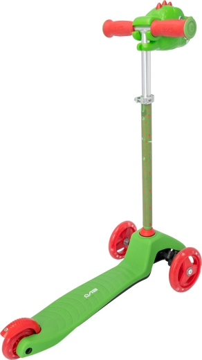 Růst dítěte podpoří nastavitelná výška řídítek (cca 62–72 cm), takže koloběžka vydrží několik sezón. LED světla v předních kolech dodávají záblesky barev během jízdy, což děti baví a zvyšuje jejich viditelnost. Zadní nožní brzda funguje zároveň jako blatník a umožňuje rychlé a intuitivní zastavení.