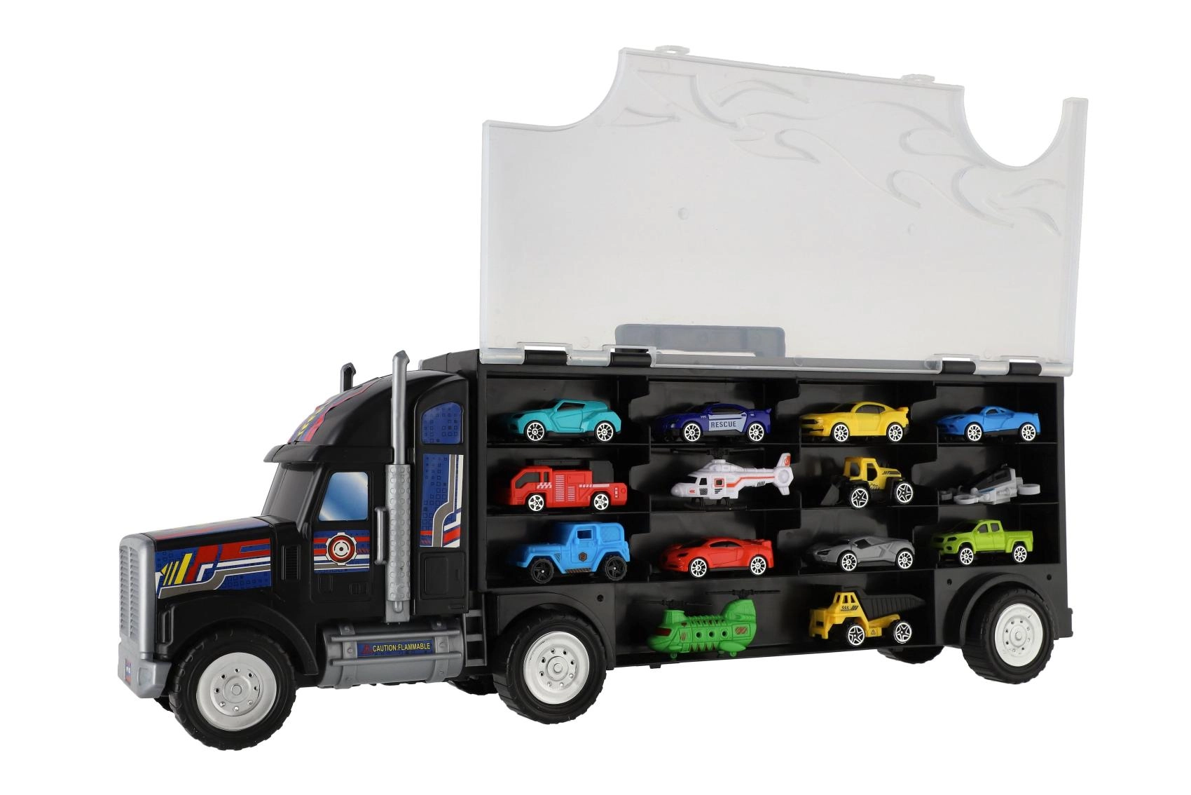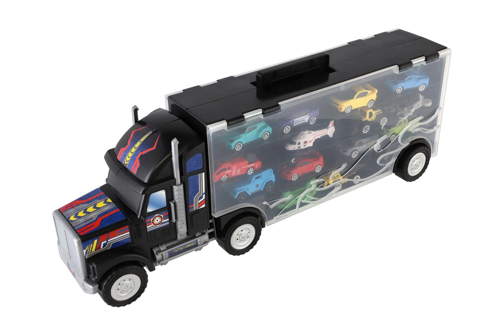 - Individuální přihrádky pro autíčka uvnitř průhledného návěsu