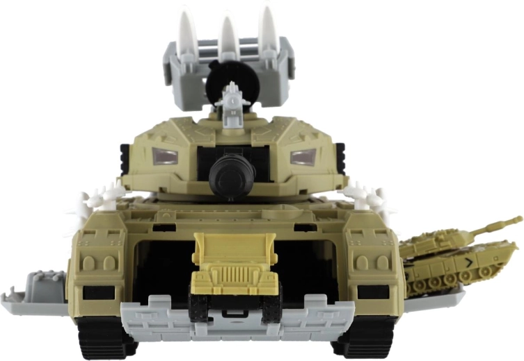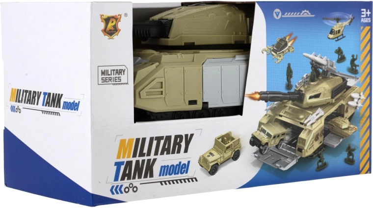 Tank doplňují figurky vojáků, doprovodná vozidla a vrtulník. Děti mohou vytvářet propracované scény a rozvíjet představivost i spolupráci.
