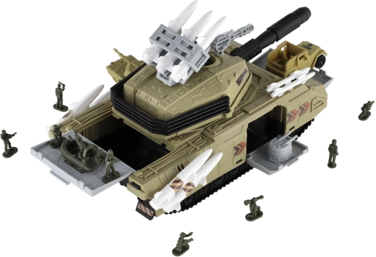 Akční hračka pro malé fanoušky armády: plastový tank s detailním zpracováním, volným chodem a bohatým příslušenstvím. Otevírací části a přiložená vozidla, vrtulník a figurky vojáků podporují kreativní a tematickou hru plnou misí a dobrodružství.