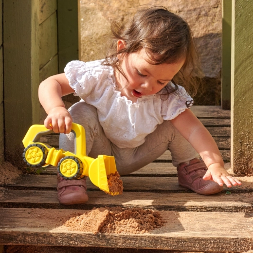 Realistický vzhled a funkční přední lžíce povzbuzují děti k kreativnímu a konstruktivnímu hraní. Při nabírání, přesypávání a převážení materiálu si děti přirozeně trénují koordinaci, jemnou i hrubou motoriku a manuální dovednosti.