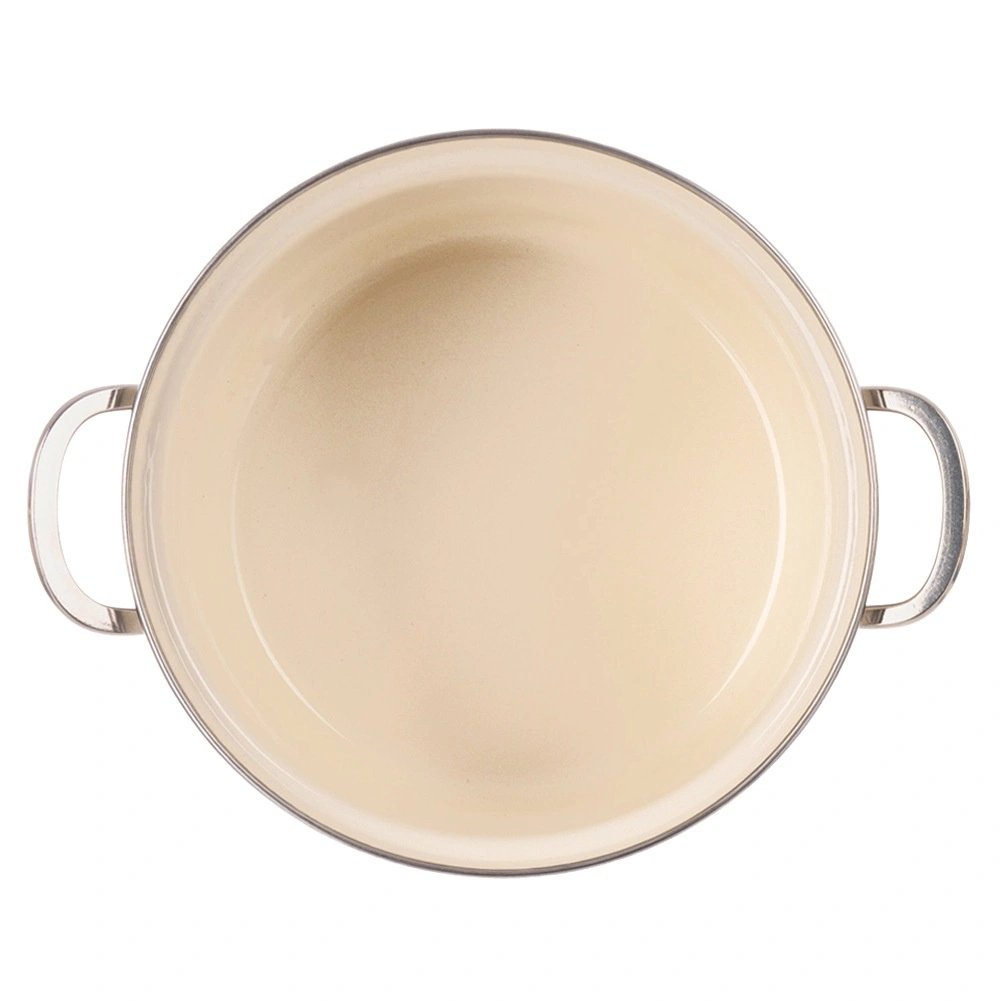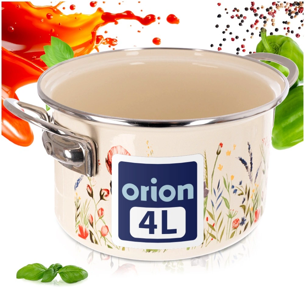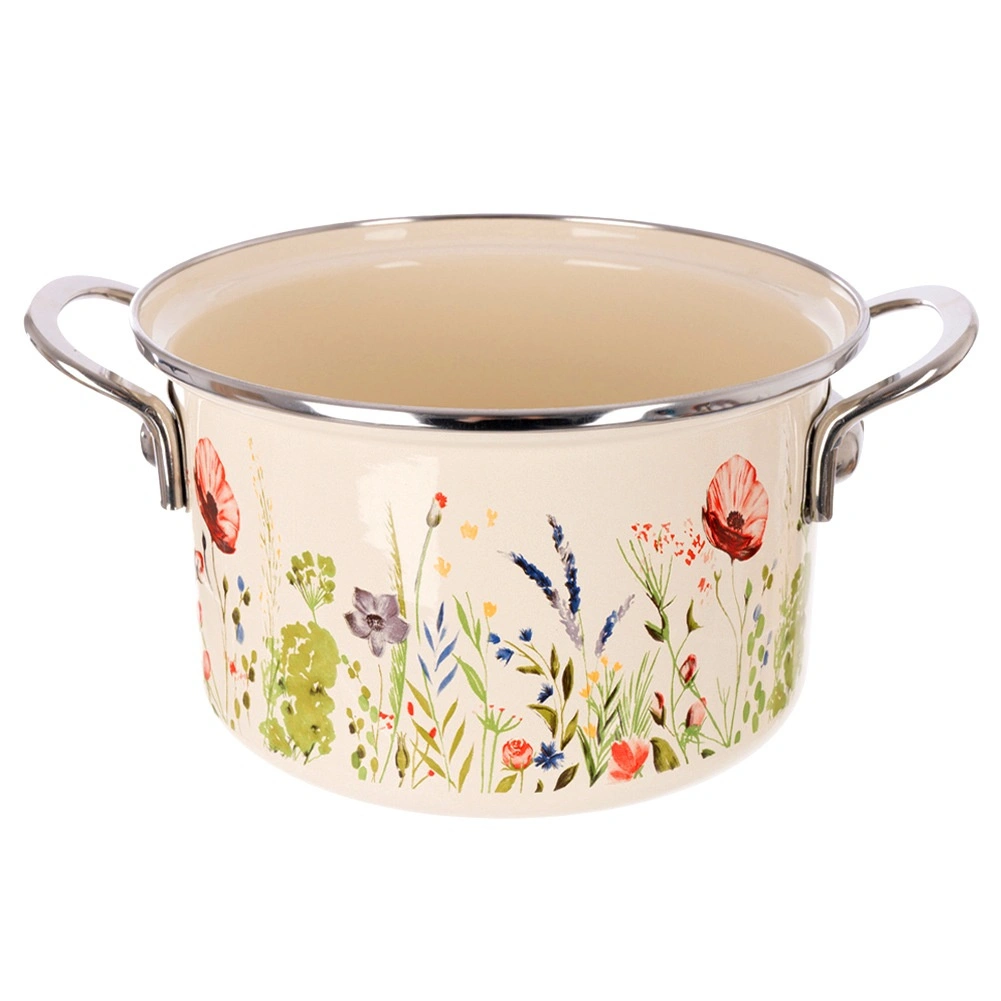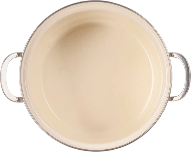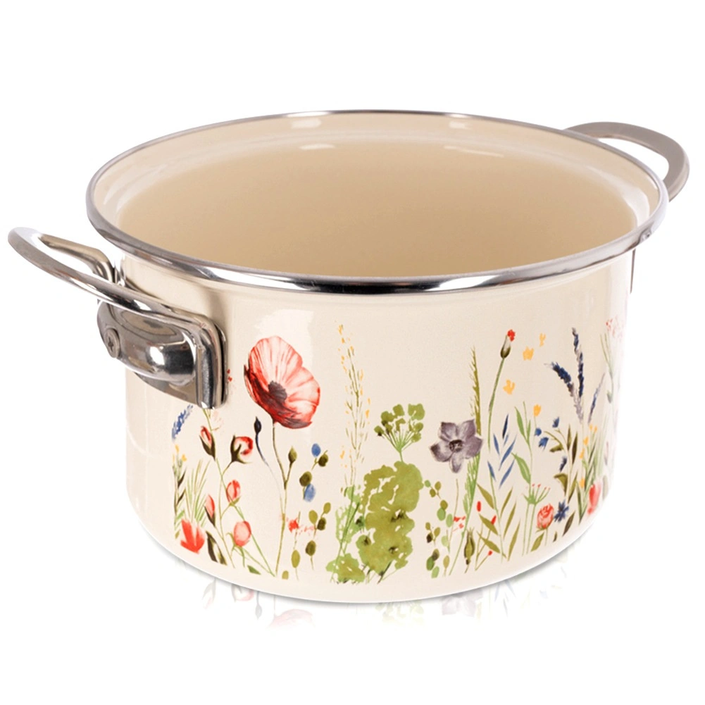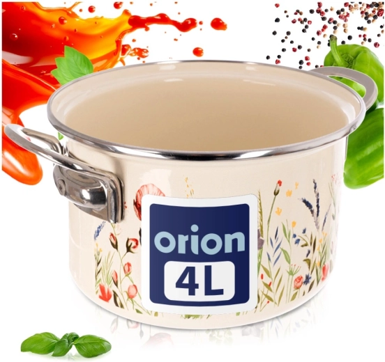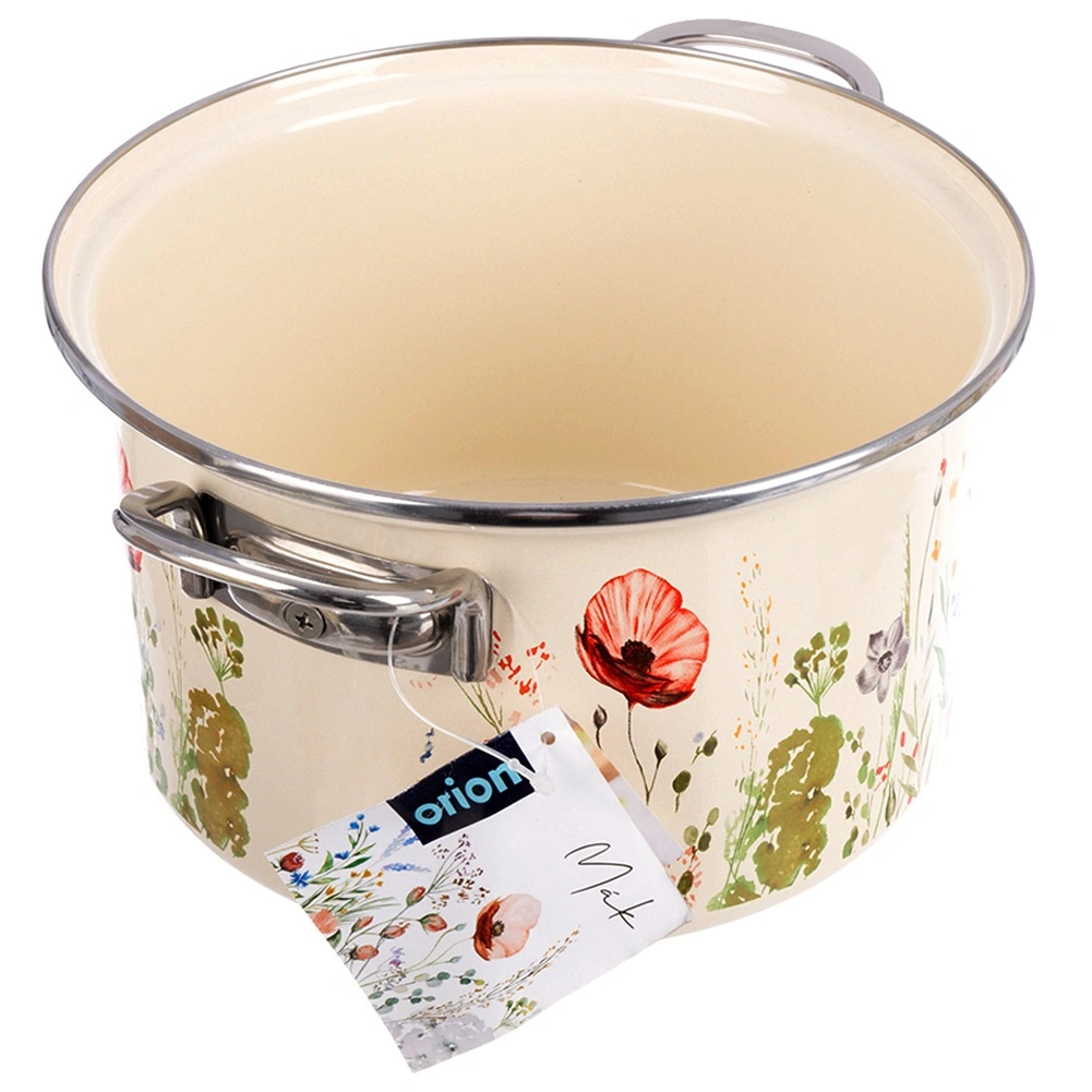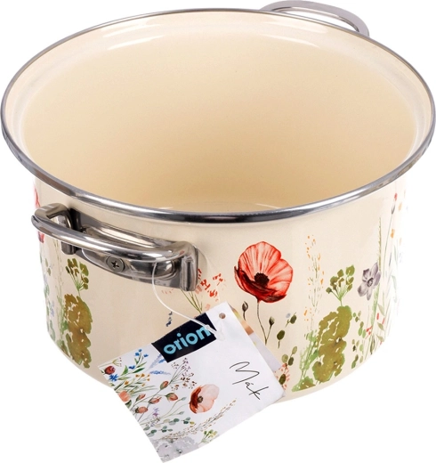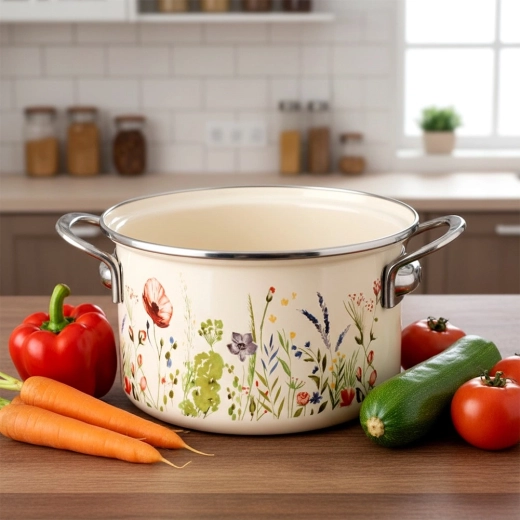 Tělo ze smaltované oceli v krémové barvě s květinovým dekorem, nerezový rantl a rukojeti pro delší životnost a snadné čištění.
