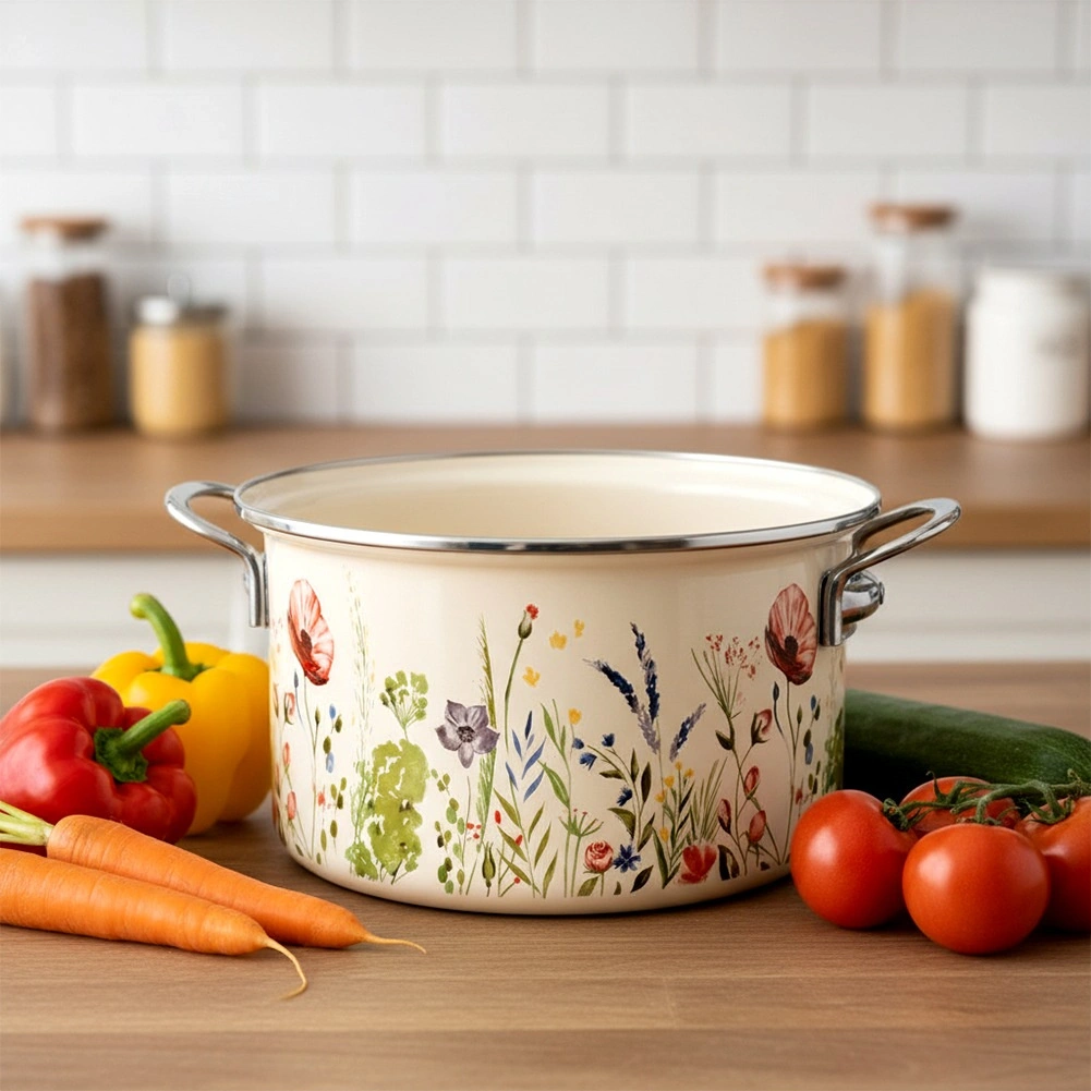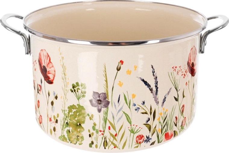 Díky široké kompatibilitě je hrnec vhodný na plyn, elektřinu, sklokeramiku, halogen i indukci a lze jej používat také v troubě. Po vaření jej bez obav vložíte do myčky. Smalt je hygienický a zdravotně nezávadný, proto nepřejímá pachy ani chutě a je bezpečný i pro alergiky. Dekor může nést drobné výrobní nerovnosti (např. jemné vyboulení či nesymetrický potisk), které nemají vliv na funkčnost a podtrhují tradiční charakter výrobku.