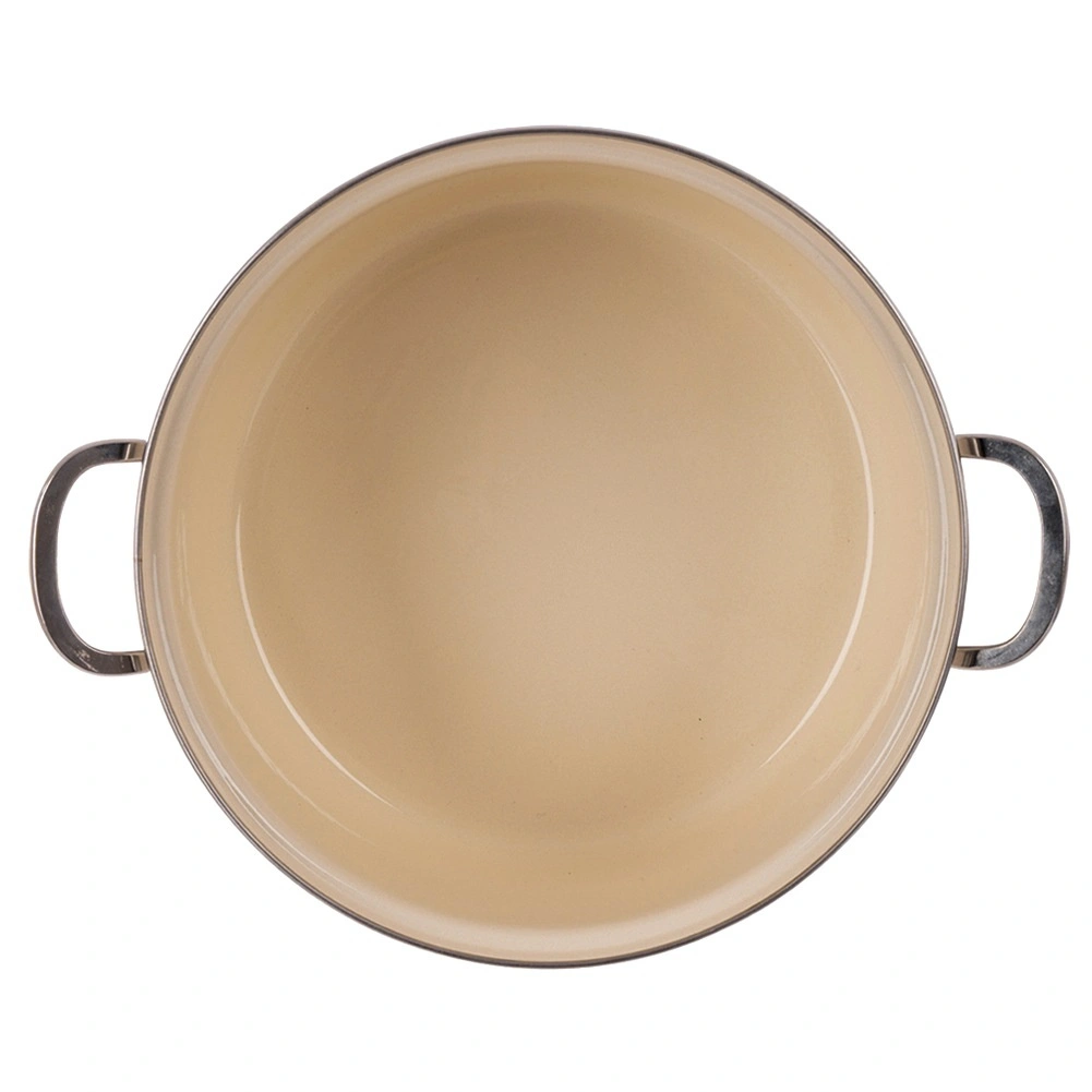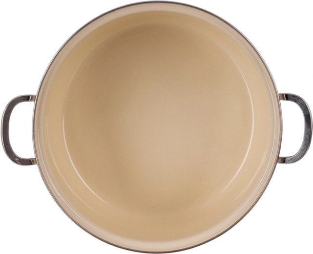 Hladký smalt je hygienický a snadno se čistí, nerezový rantl a pevná madla zajišťují stabilitu a dlouhou životnost.