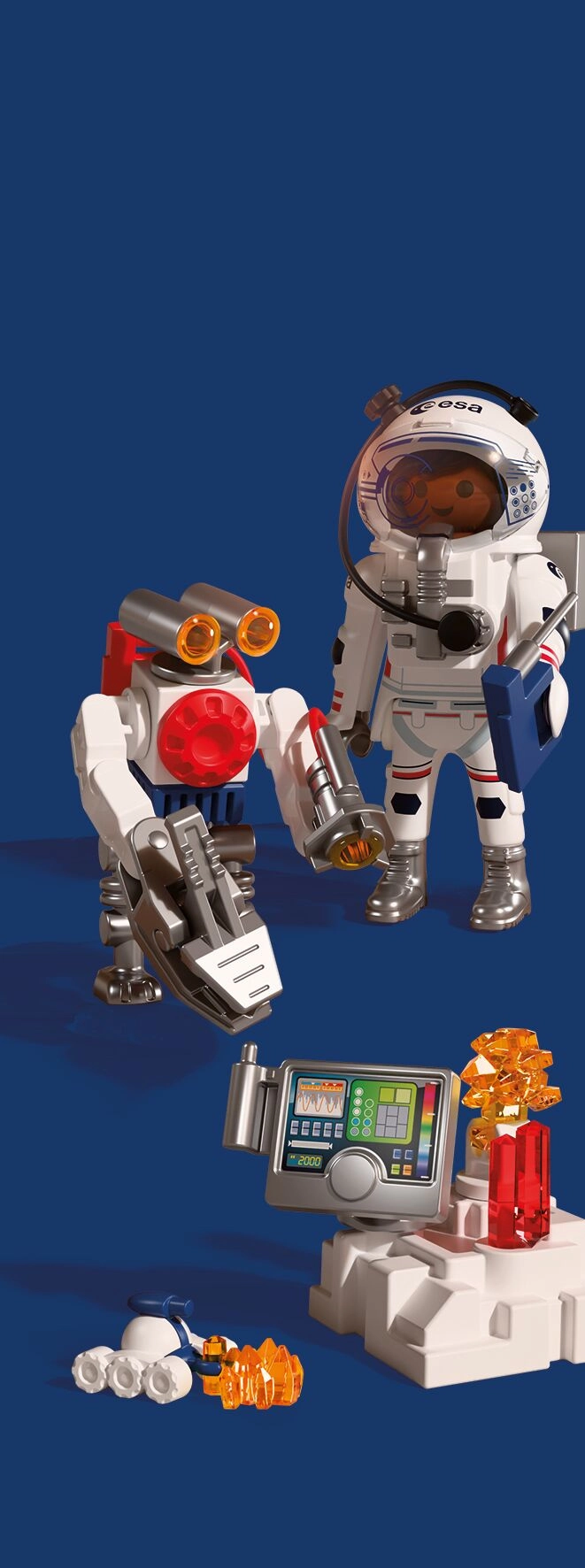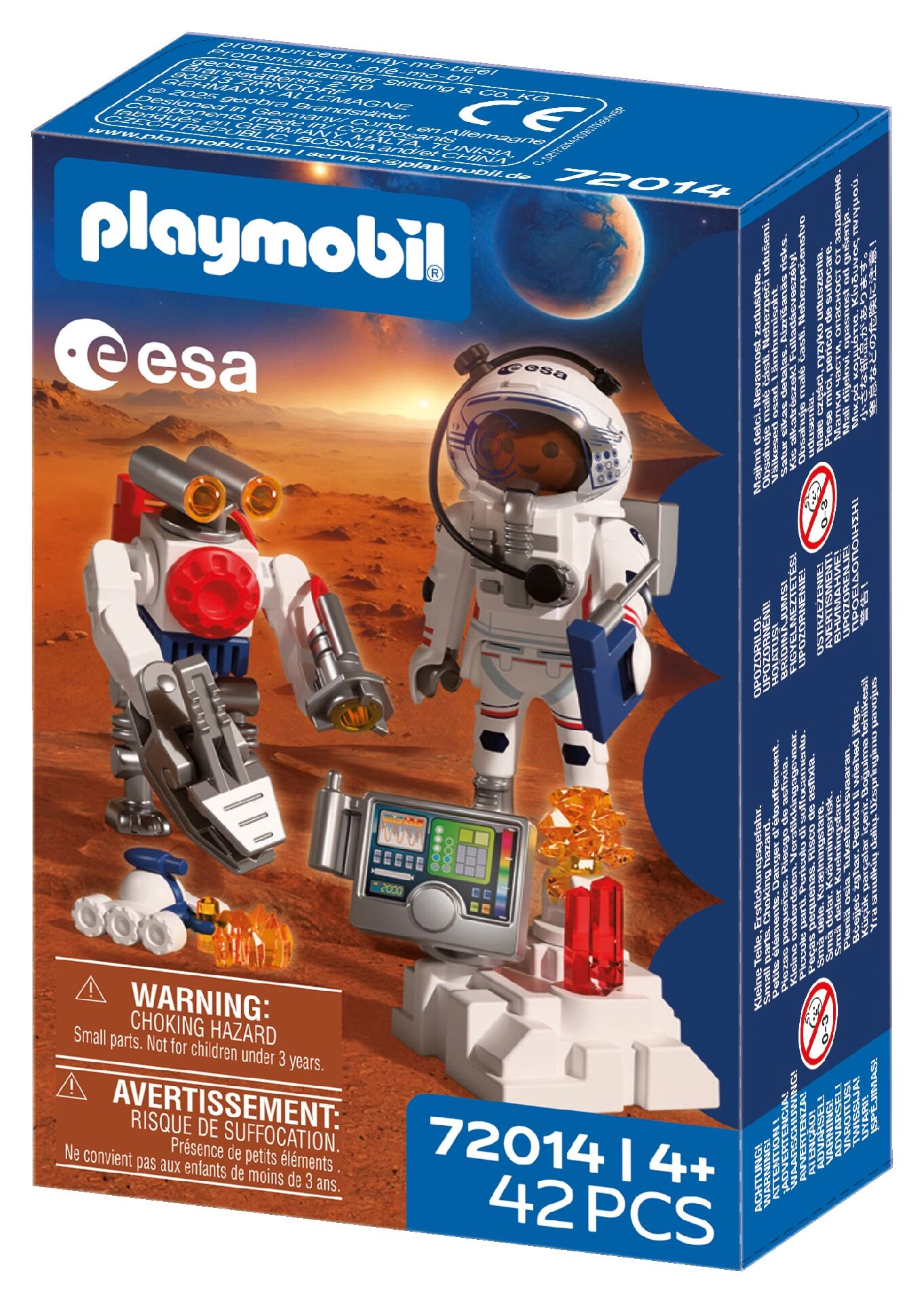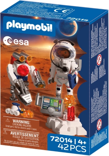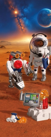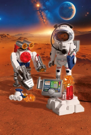 Zažijte autentické kosmické dobrodružství s PLAYMOBIL ve spolupráci s ESA. Astronaut s pomocí obratného robota a zručného vozítka zkoumá povrch rudé planety, sbírá vzorky půdy a odhaluje tajemné signály z nitra Marsu. Pohyblivé, uchopovací rameno robota usnadňuje zvedání nálezů, zatímco vozítko připomínající škorpiona se dostane i do těžko přístupných míst.