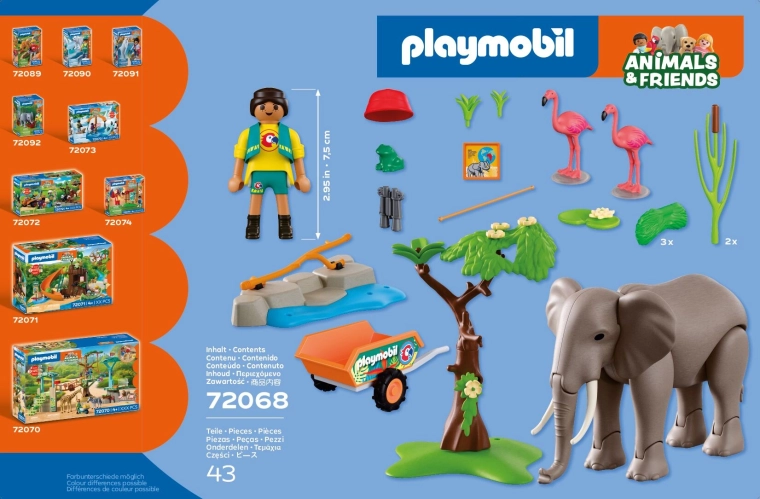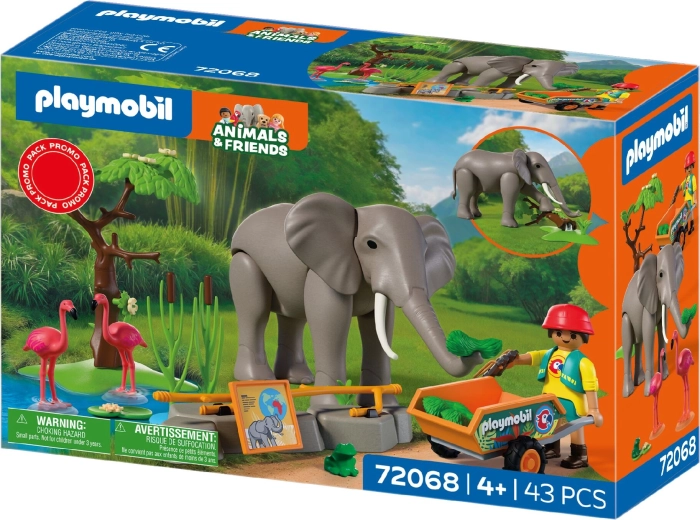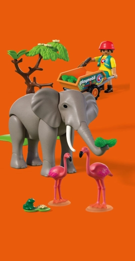 Objevte hravý svět ZOO s sadou PLAYMOBIL Animals & Friends, kde majestátní slon žije ve výběhu s flamingy a malou žabkou. Pohyblivý slon umí hýbat končetinami, chytat potravu chobotem a dokonce povalit strom, což dodává hře realističnost a napětí. Ošetřovatelka vozí čerstvé krmivo na vozíku a sleduje zvířata přes dalekohled. Nechybí vodní nádrž, zeleň a množství doplňků pro nekonečné příběhy.