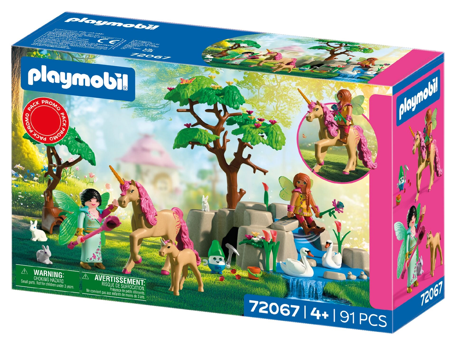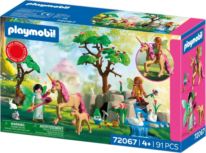 Tato okouzlující herní sada zve děti do světa pohádek: dvě víly se vydávají na výpravu s přátelským Joylingem, majestátním jednorožcem a jeho roztomilým hříbětem. Cestou potkávají lesní zvířátka, sledují plující labutě a objevují zářící drahokamy ukryté v jeskyni. Díky množství detailů a snímatelným doplňkům je hraní vždy jiné a podněcuje dětskou fantazii.
