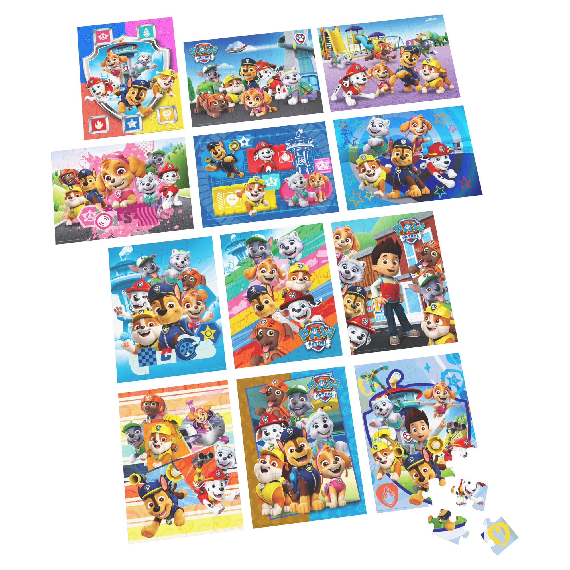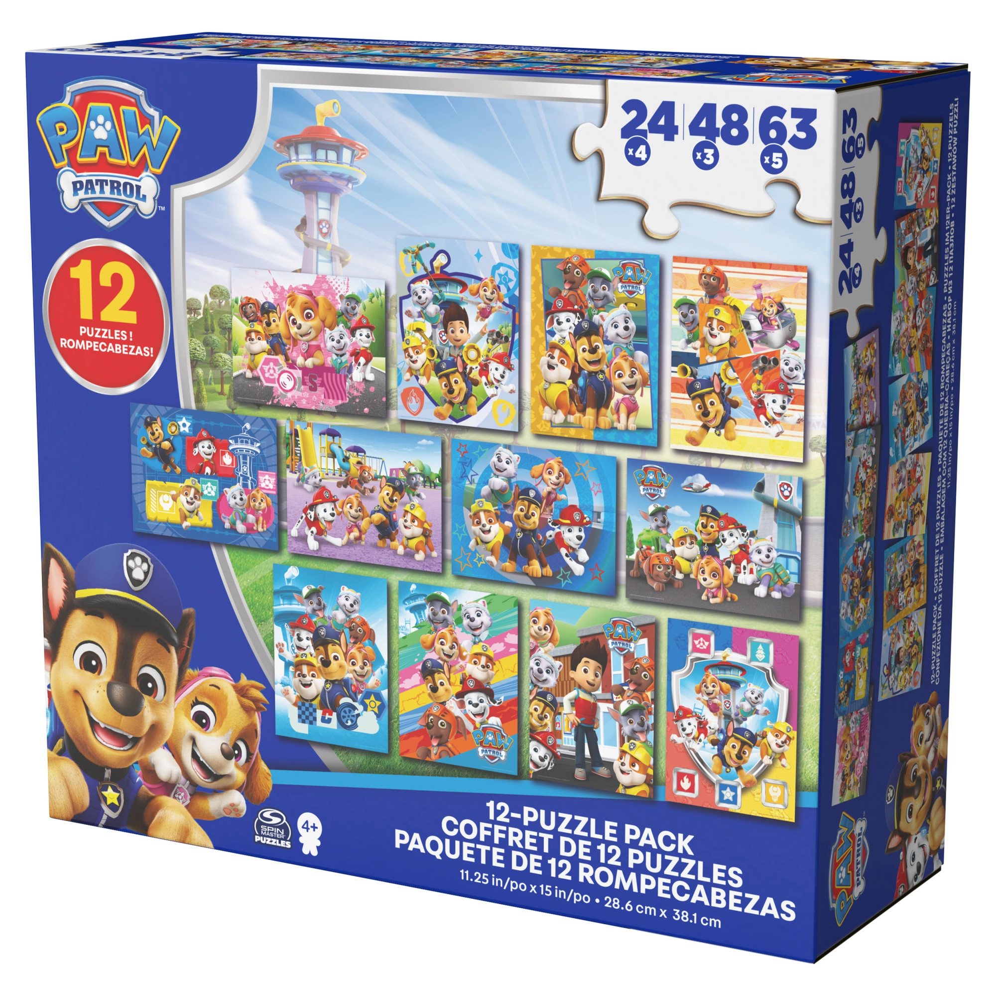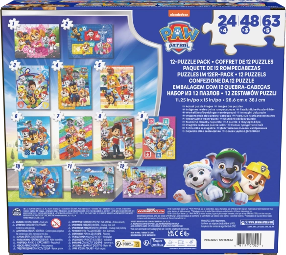 Tento barevný set puzzle od značky Spin Master je inspirován oblíbeným seriálem PAW PATROL. Děti si mohou poskládat obrázky se štěňaty Marshall, Rubble, Chase, Rocky, Zuma, Skye a jejich kamarády. Každý hotový obrázek má rozměry 38,1 × 28,5 cm, takže vynikne na každém dětském stolku.