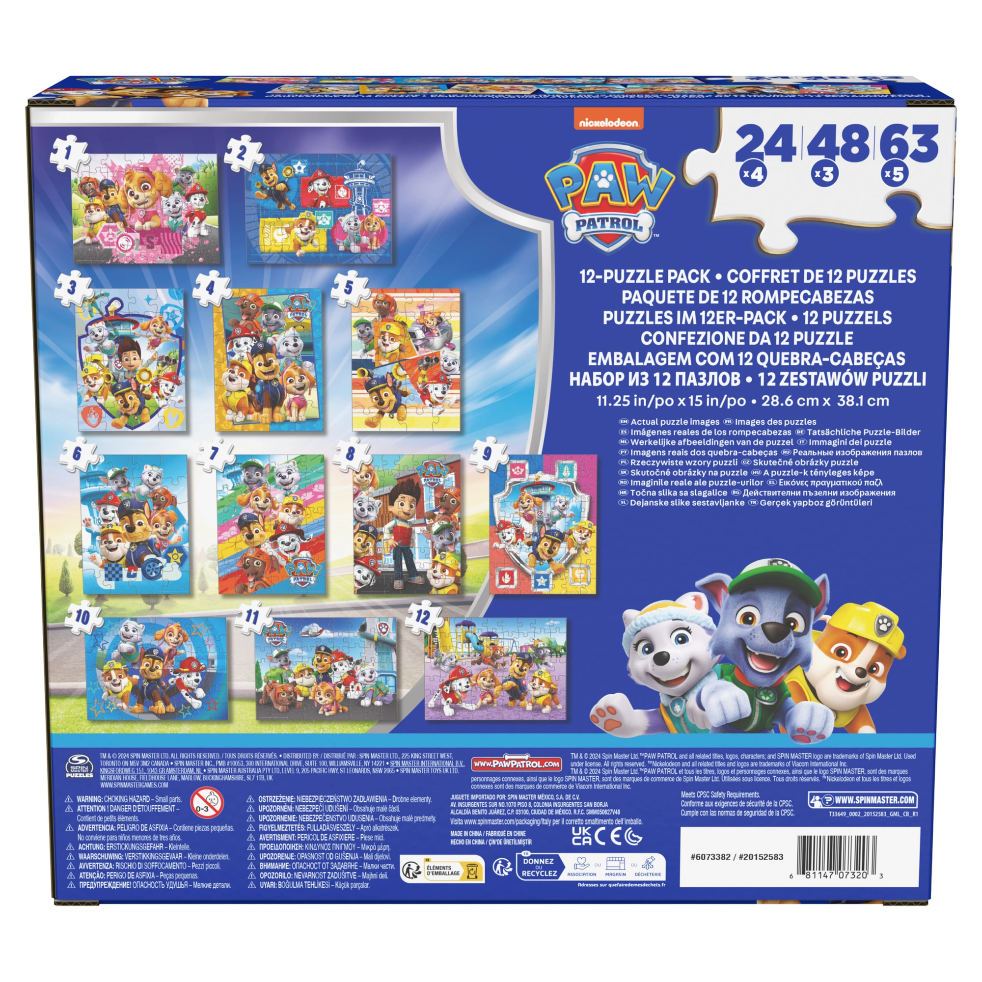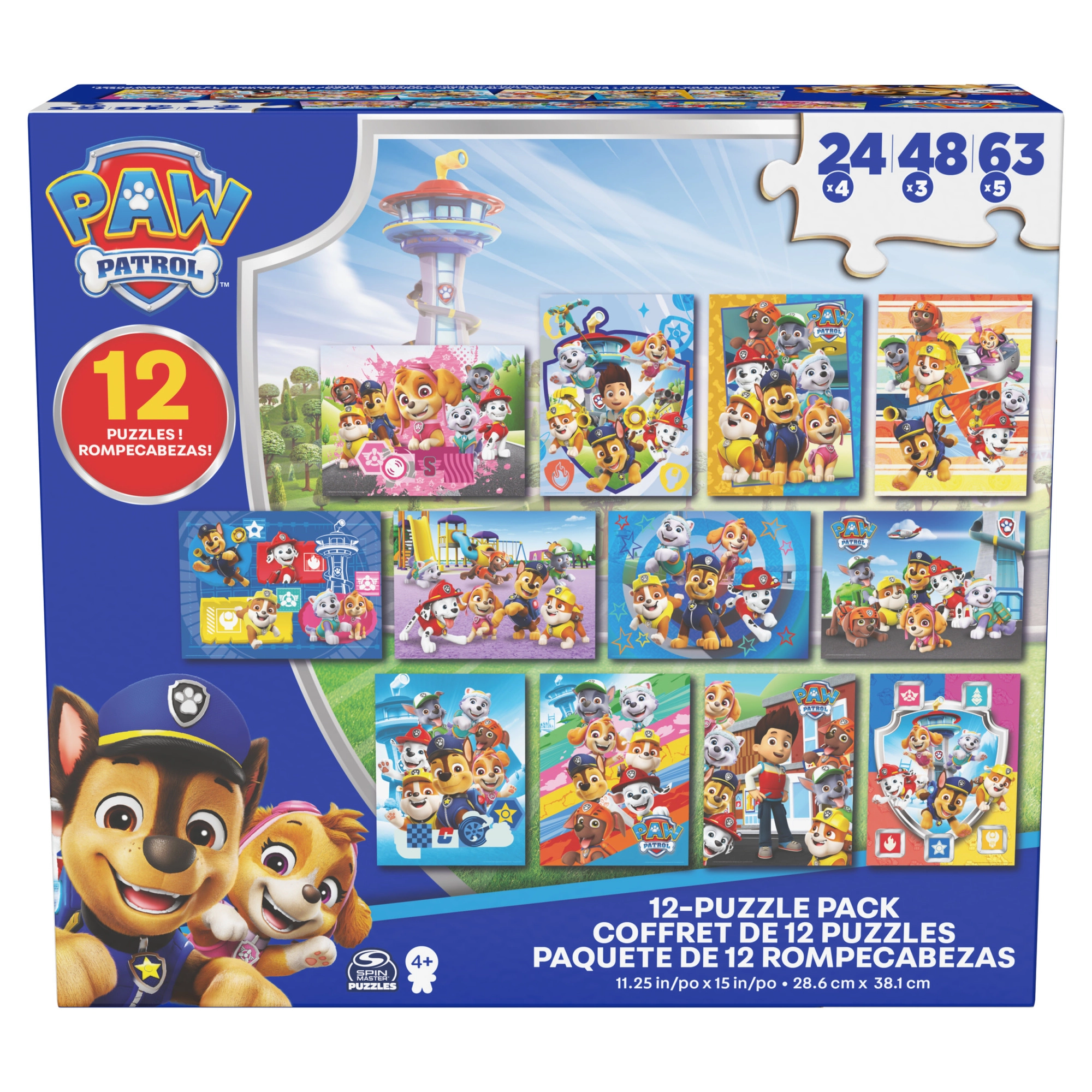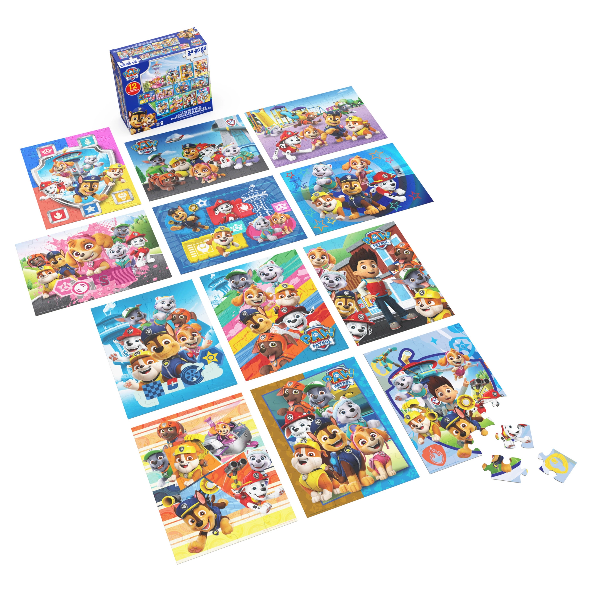 Tento barevný set puzzle od značky Spin Master je inspirován oblíbeným seriálem PAW PATROL. Děti si mohou poskládat obrázky se štěňaty Marshall, Rubble, Chase, Rocky, Zuma, Skye a jejich kamarády. Každý hotový obrázek má rozměry 38,1 × 28,5 cm, takže vynikne na každém dětském stolku.