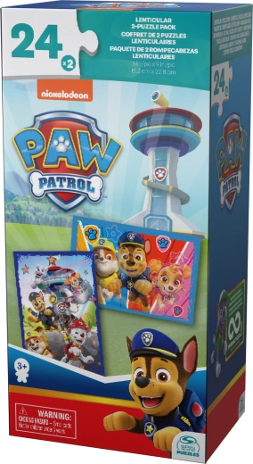 Zábavná sada puzzlí s hrdiny ze seriálu PAW PATROL přináší 2 různé 3D lentikulární obrázky po 24 dílcích. Díky efektu 3D ožívají Chase, Marshall, Skye a další postavičky přímo před očima. Hotový obrázek měří 22,9 × 15,2 cm a skvěle rozvíjí trpělivost, logické myšlení i koncentraci dětí od 4 let.
