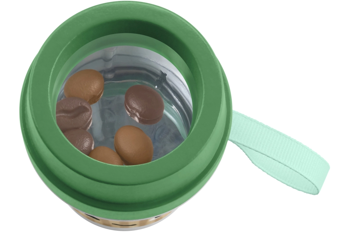 Díky kompaktní velikosti se hrneček snadno vejde do malých ručiček a podporuje koordinaci oko–ruka. Reálný vzhled skutečného kelímku na kávu z něj dělá zábavný doplněk na doma i na cesty.