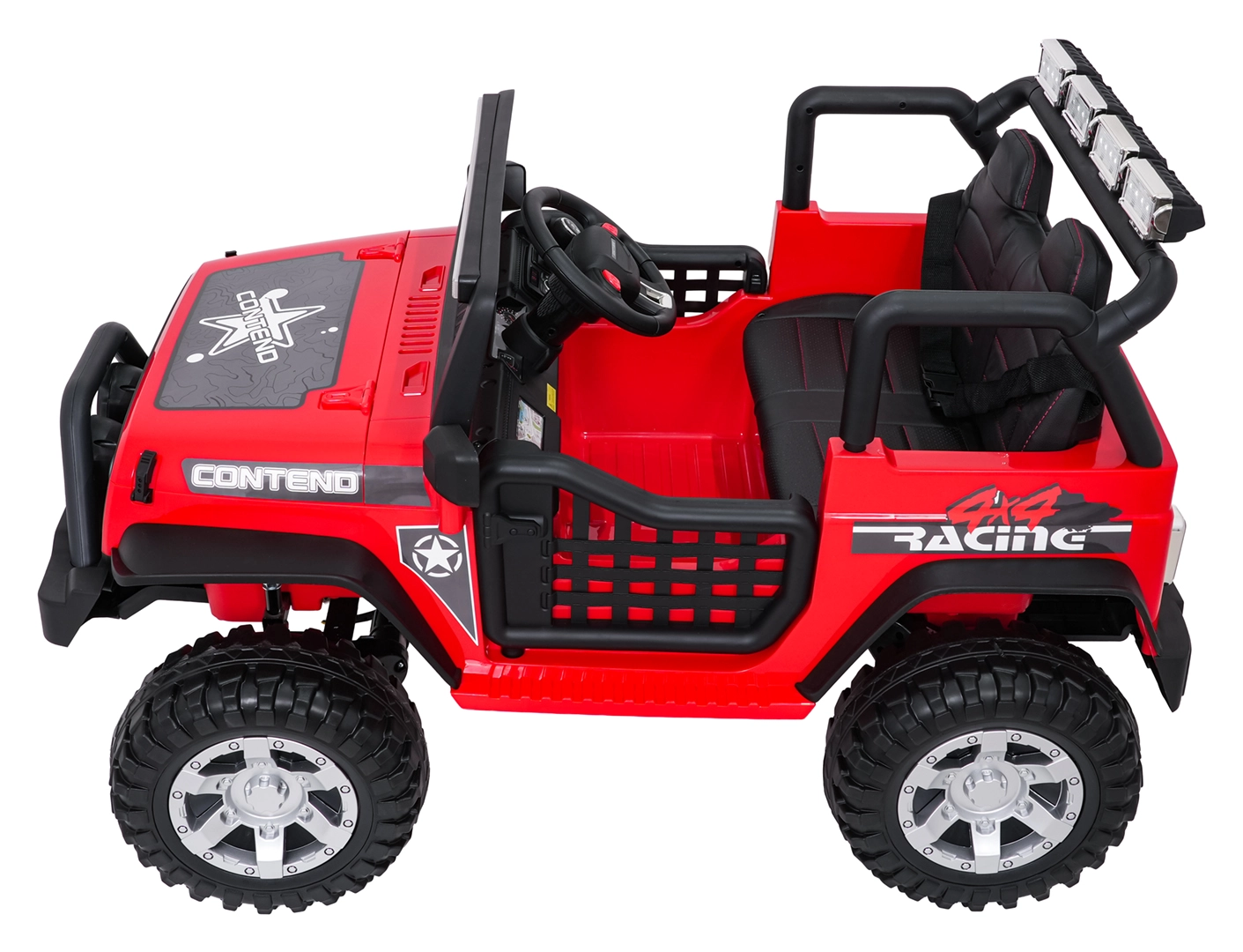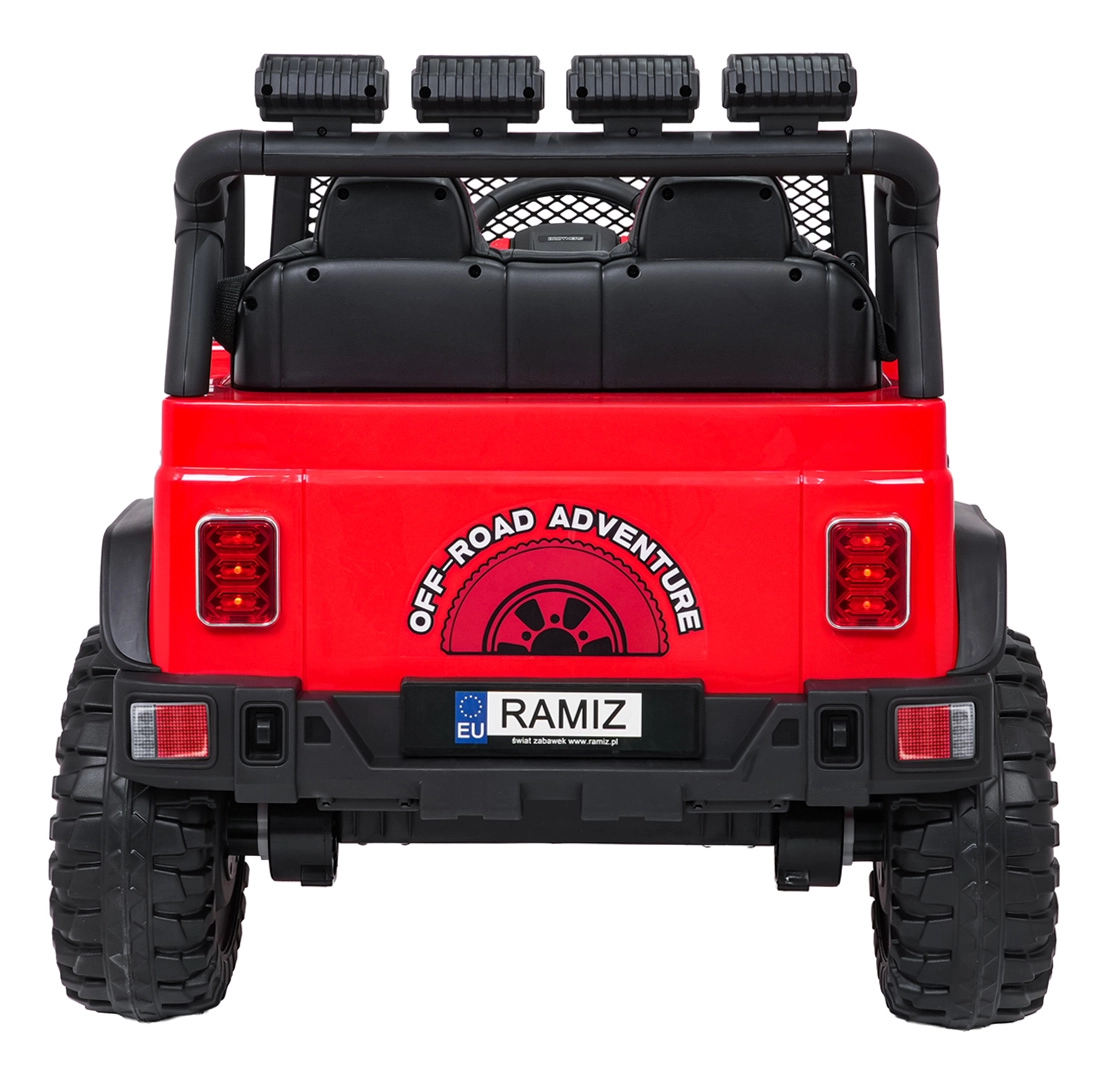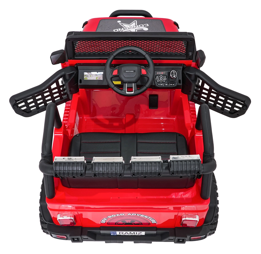 Silný a stylový dětský terénní vůz pro dvě děti s pohonem 4x45 W, dvojitou baterií 2× 12 V 7 Ah, měkkými EVA koly a luxusním sedadlem z ekokůže. Nabízí plynulý rozjezd, dvě rychlosti, bohaté LED osvětlení, otevírací dveře a moderní audio panel s Bluetooth, USB, MP3 a FM rádiem. Nosnost až 50 kg a velká světlá výška 23 cm pro skutečné dobrodružství.