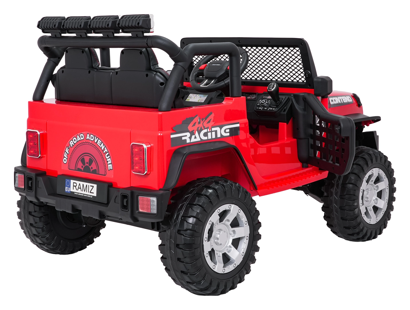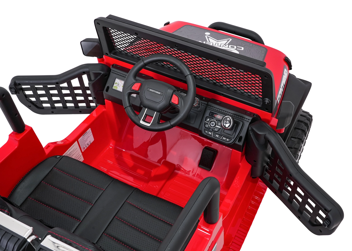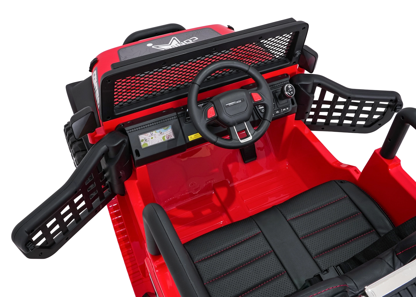 Rodiče ocení dálkové ovládání 2,4 GHz se 3 rychlostmi a nouzovým tlačítkem Stop. Otevírací dveře, vysoký podvozek a nosnost 50 kg dělají z tohoto vozu ideální volbu pro dvorek i lehký terén.
