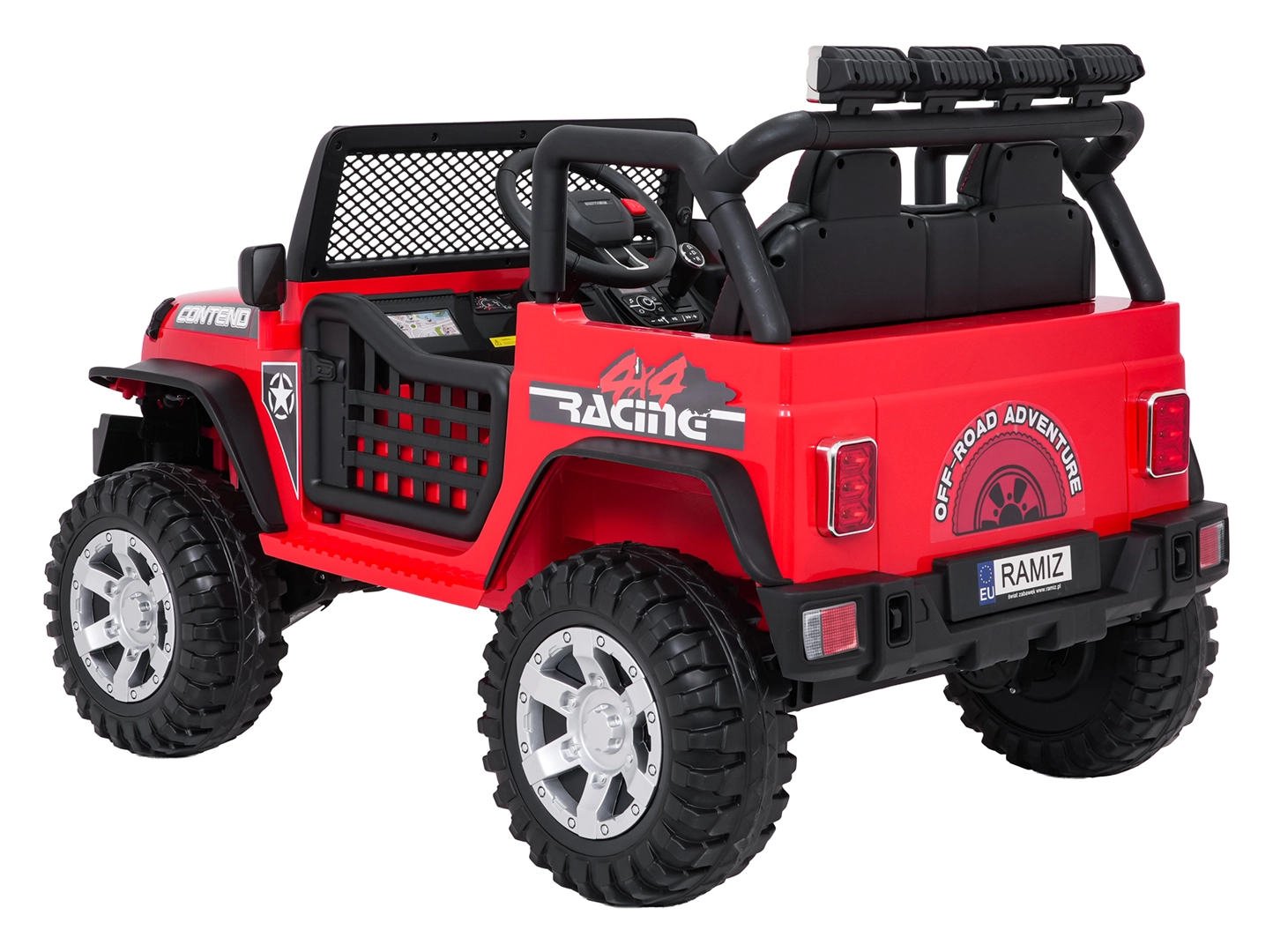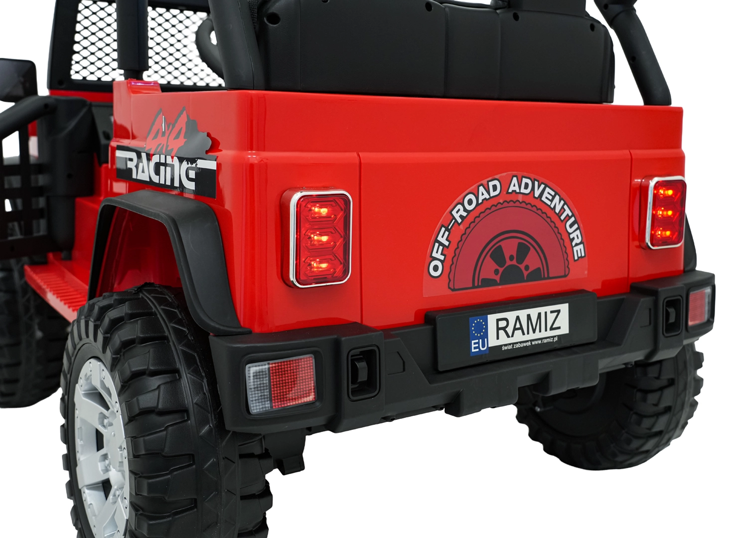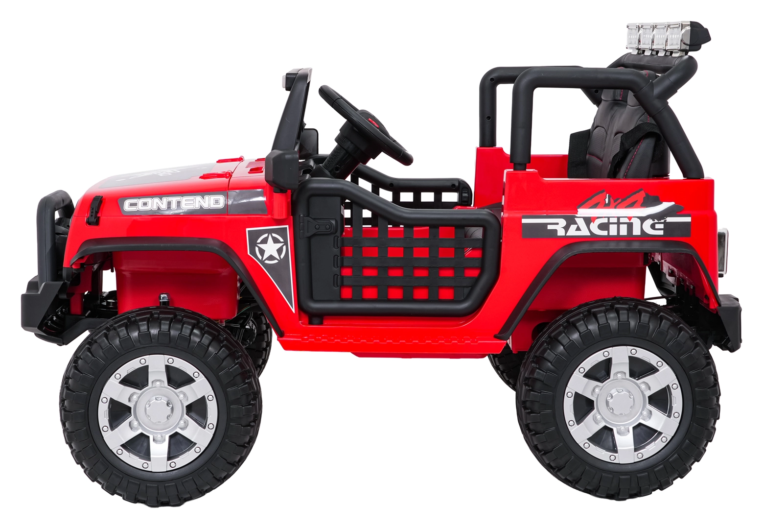 Rodiče ocení dálkové ovládání 2,4 GHz se 3 rychlostmi a nouzovým tlačítkem Stop. Otevírací dveře, vysoký podvozek a nosnost 50 kg dělají z tohoto vozu ideální volbu pro dvorek i lehký terén.