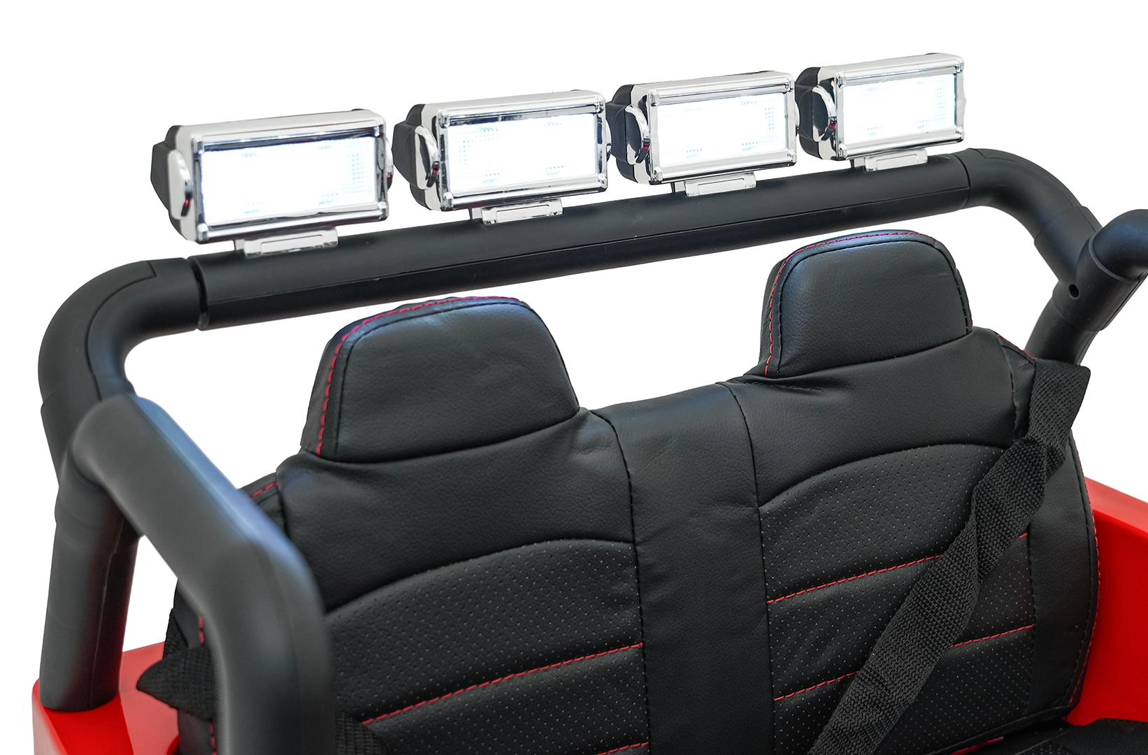 Interiér potěší dvoumístným sedadlem z ekokůže s bezpečnostními pásy, realistickým ovládacím panelem a směrovým voličem (D/N/R). Bohaté LED osvětlení (přední, zadní, na střešním oblouku) s vypínačem zvyšuje atraktivitu i viditelnost. Díky audio panelu s Bluetooth, USB, MP3 a FM rádiem je zábava vždy po ruce.