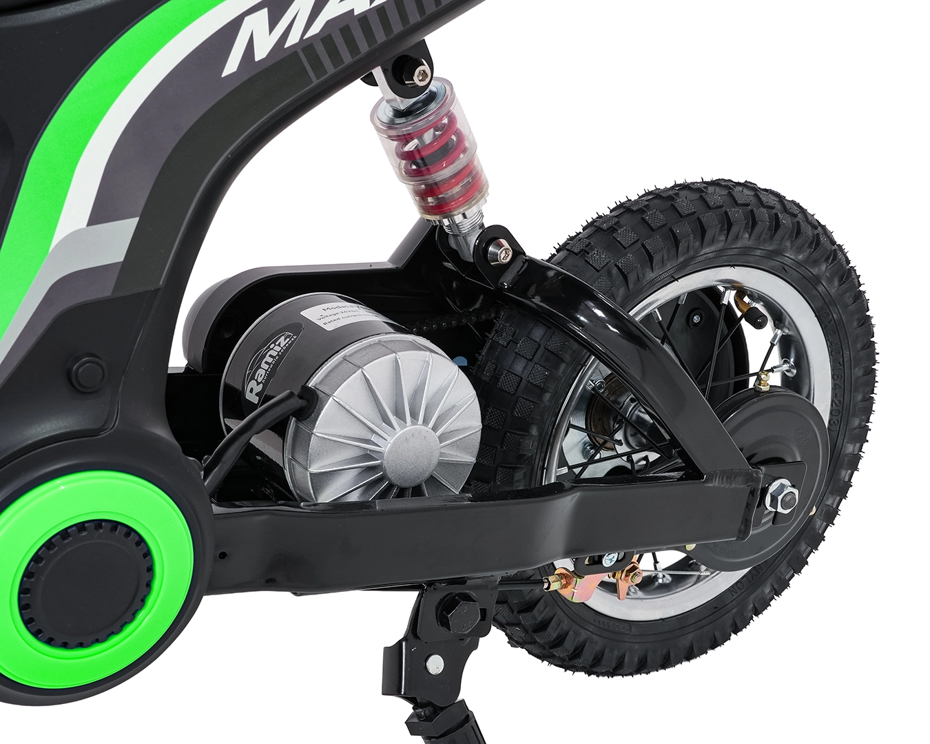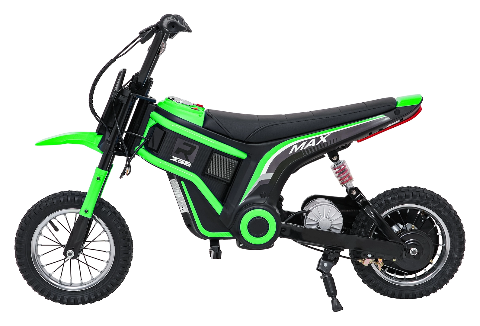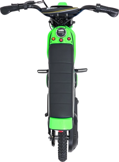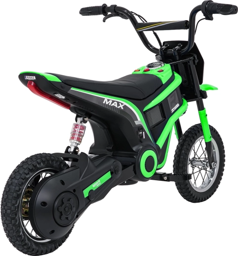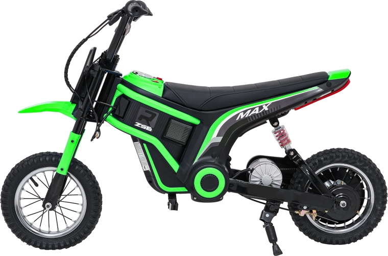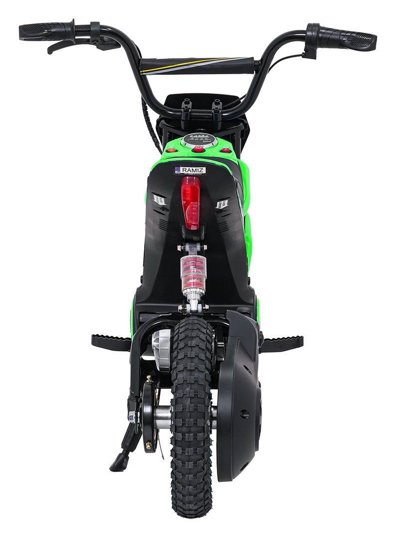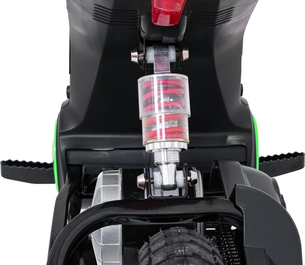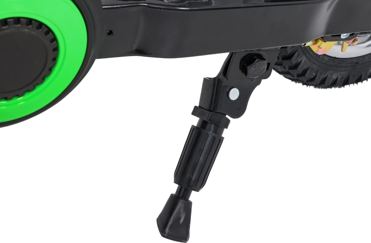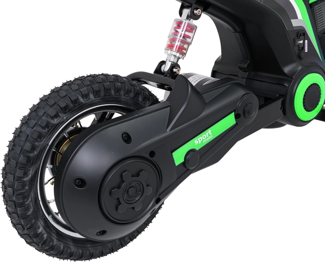 Dětská elektrická krosová motorka RZ56 Max v zelené barvě je ideální pro mladé jezdce, kteří chtějí zažít opravdový off‑road. Díky výkonnému 350W motoru s řetězovým převodem a bateriovému systému 24V nabídne svižný zátah, plynulý rozjezd a stabilní výkon. Zadní tlumič a nafukovací kola 30×5 cm zajišťují pohodlí a jistotu na různých površích.