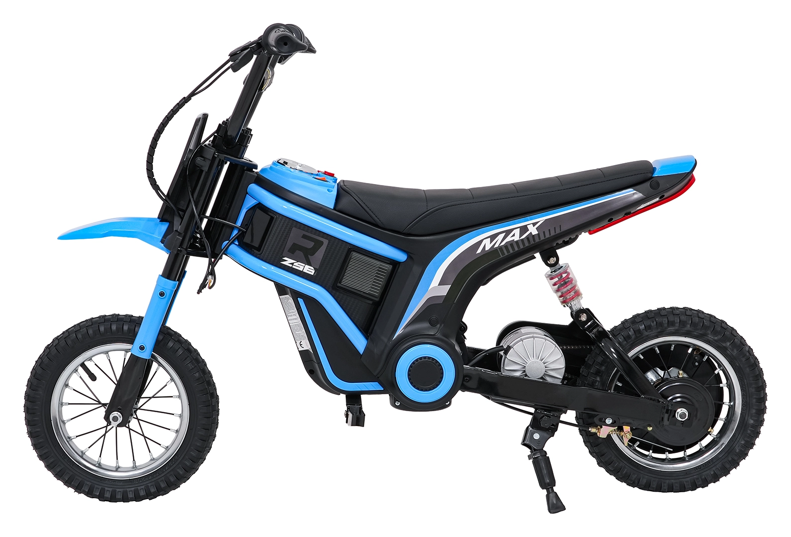 RZ56 Max je robustní elektrická dětská cross motorka pro malé jezdce, kteří chtějí zažít opravdovou radost z jízdy v terénu i na dvoře. Výkonný 350W elektromotor v kombinaci s řetězovým pohonem a zadním tlumičem zajišťuje plynulou akceleraci, stabilitu a pohodlí na nerovnostech. Díky 3 volitelným rychlostem a plynulému startu je jízda bezpečnější i pro začátečníky.
