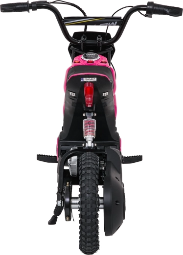 Objevte radost z jízdy s elektrickou motorkou pro děti RZ56 Max. Robustní rám, nafukovací terénní pneumatiky a zadní tlumič se postarají o stabilitu a komfort na různých površích. S třístupňovým nastavením rychlosti (L/M/H) a plynulým startem se malí jezdci cítí jistě a bezpečně.