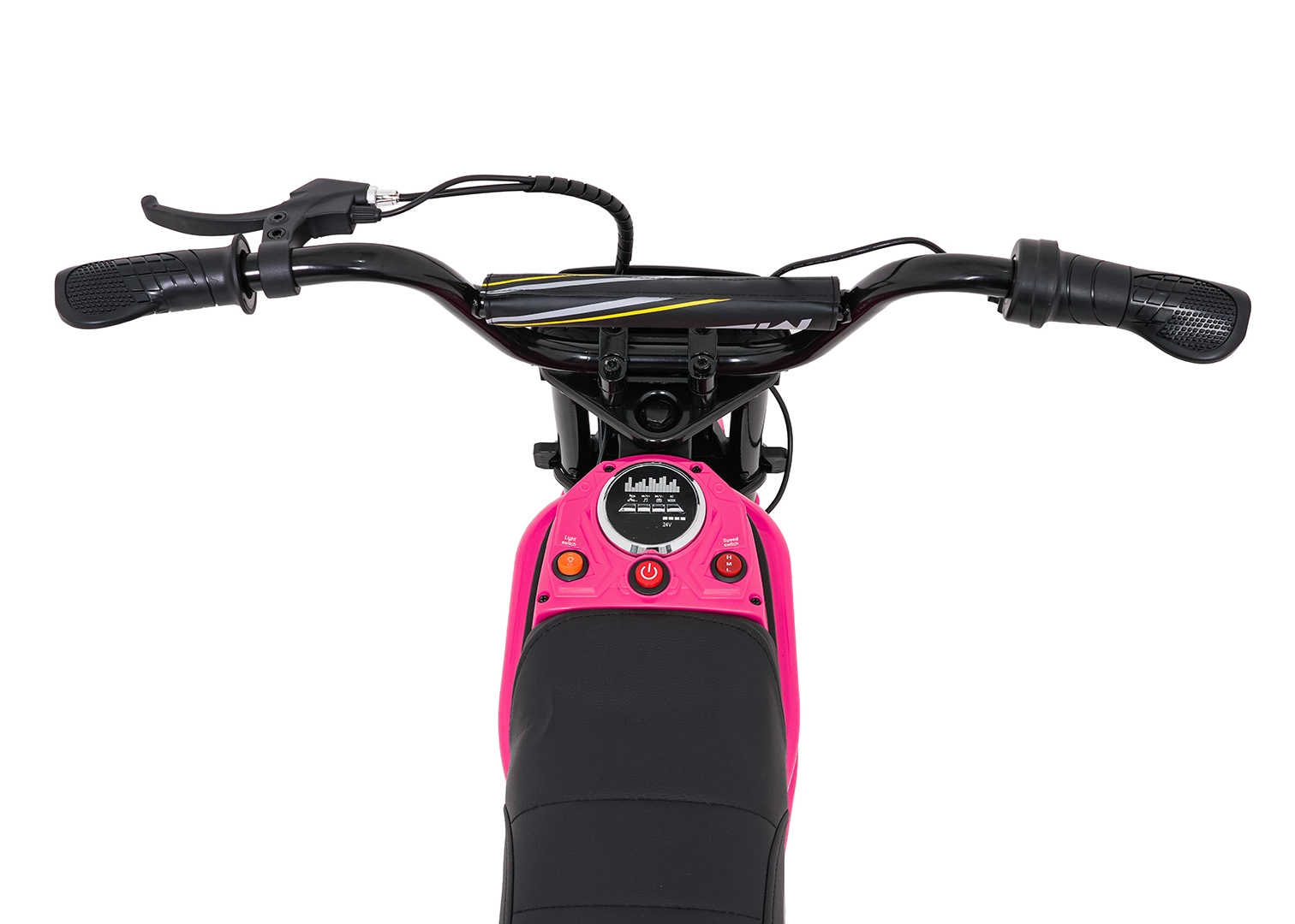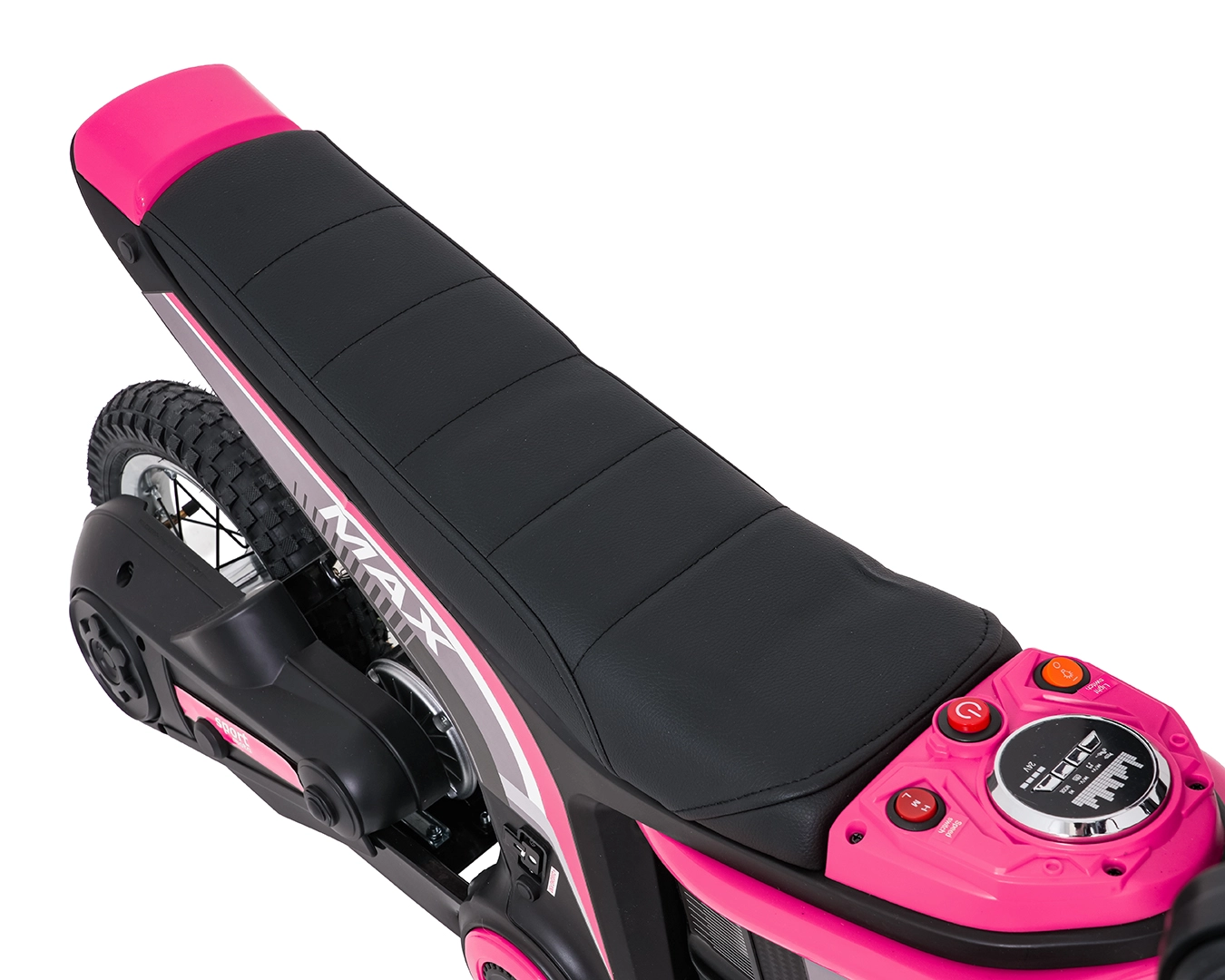 Výkonný motor 350 W napájený 24V sadou baterií poskytne dostatek síly pro zábavnou jízdu, zatímco přehledný ovládací panel s ukazatelem stavu baterie, tlačítkem napájení a přepínačem rychlostí usnadní ovládání. Audio panel s Bluetooth, vestavěnými melodiemi a klaksonem přidává další porci zábavy.