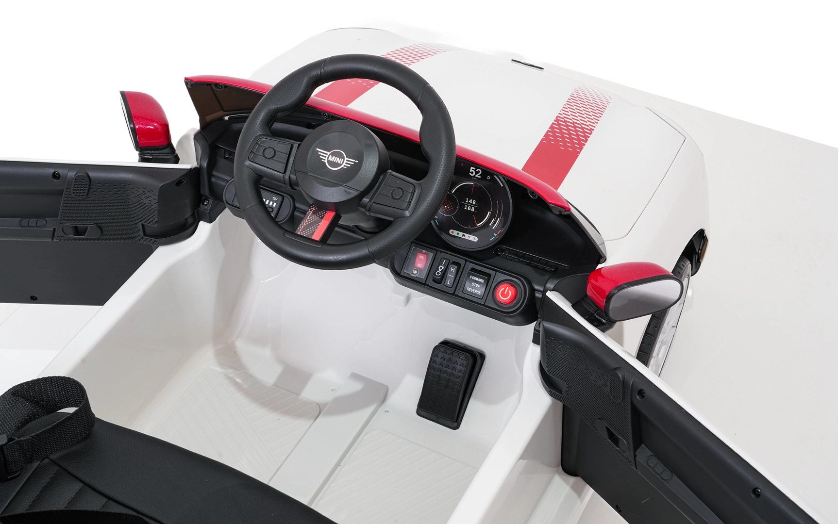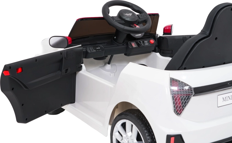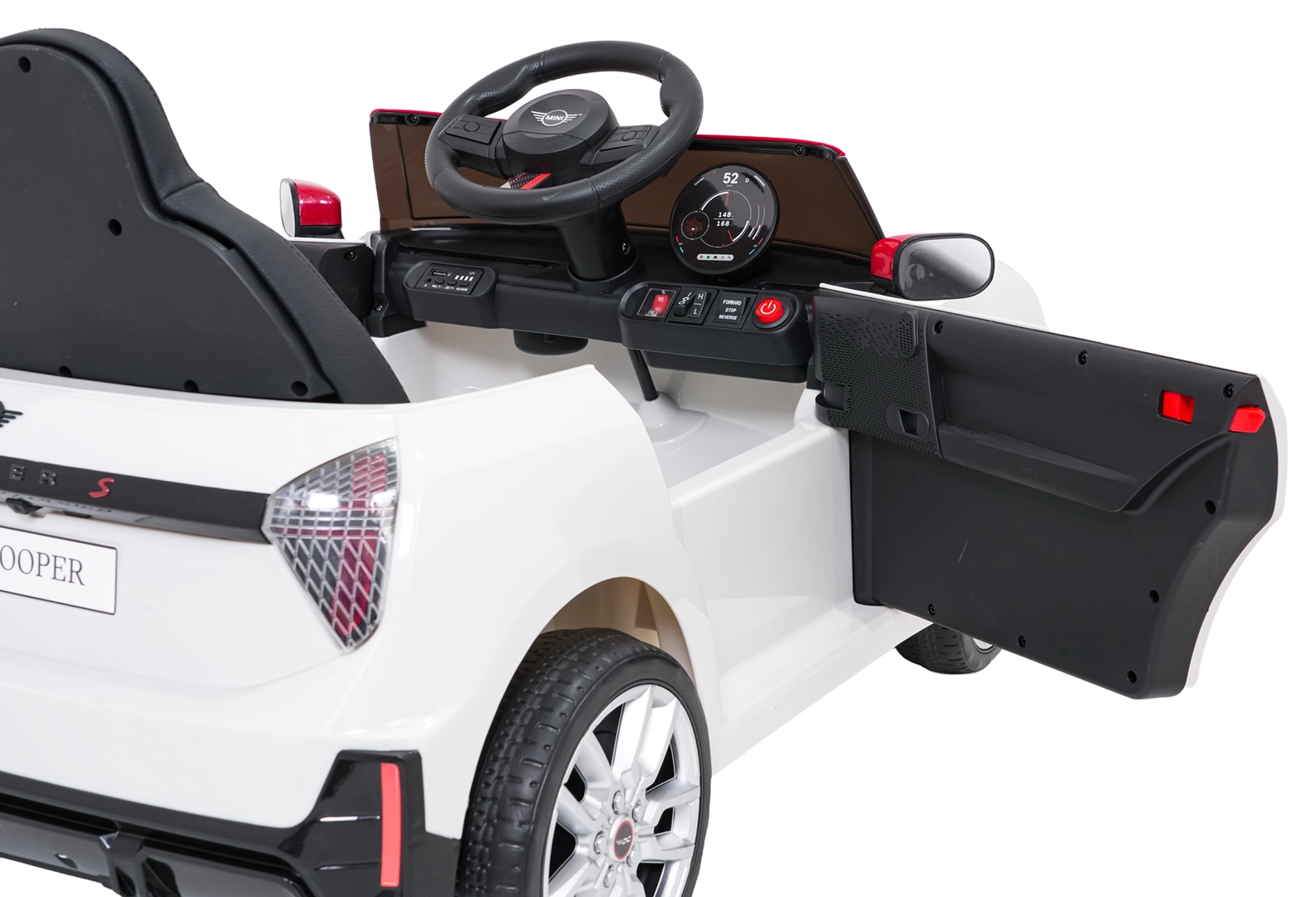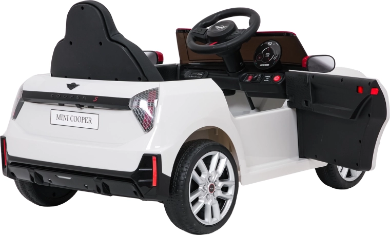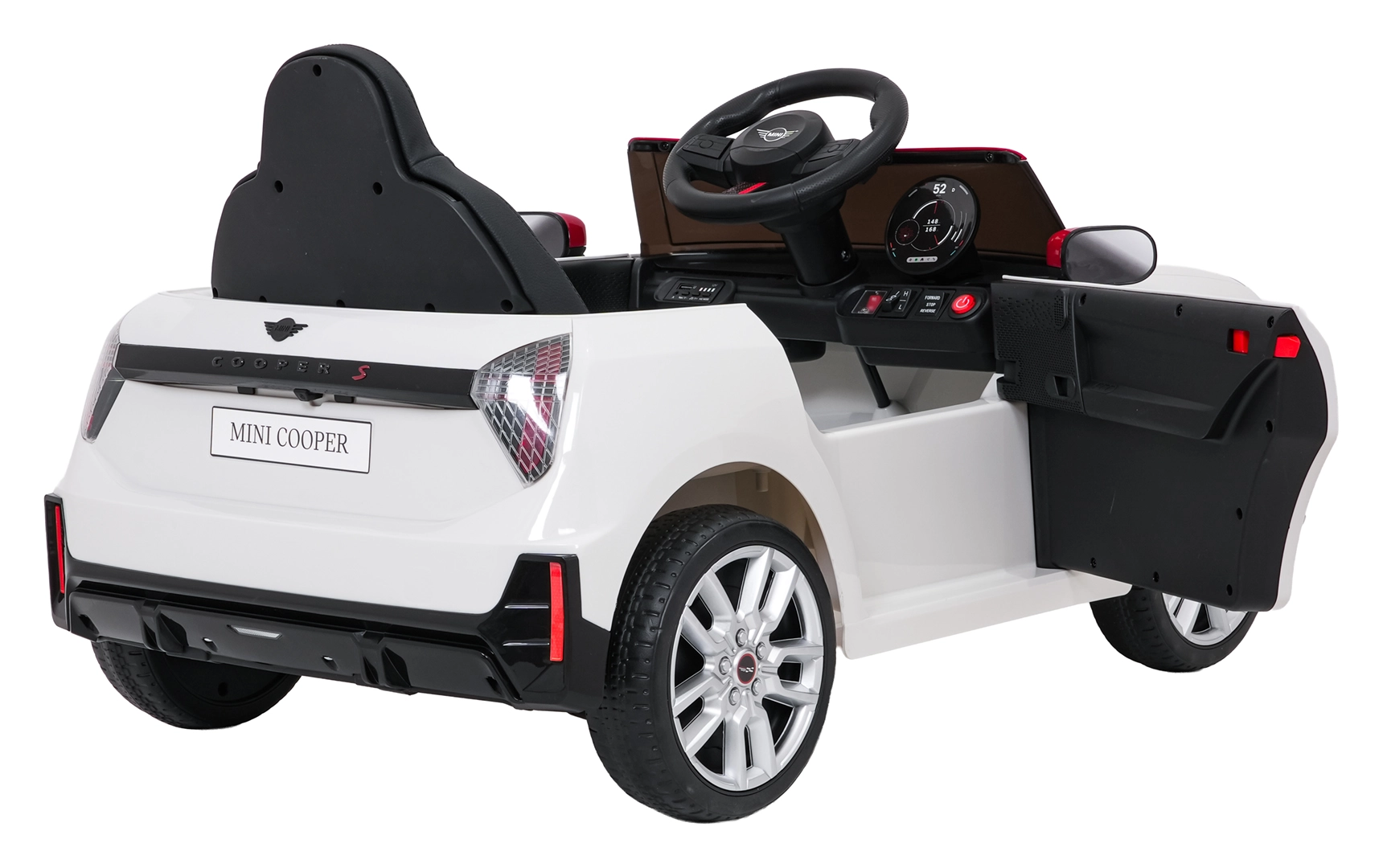 Elektrické autíčko MINI Cooper S v bílé barvě potěší každého malého řidiče svým věrným designem, funkčními LED světly a kvalitním zpracováním. Díky pomalému rozjezdu je jízda plynulá a bezpečná, zatímco pěnová kola EVA (19 × 6 cm) zajistí tichý chod a dobrou přilnavost na různých površích. Zadní odpružení navíc zvyšuje komfort při jízdě.