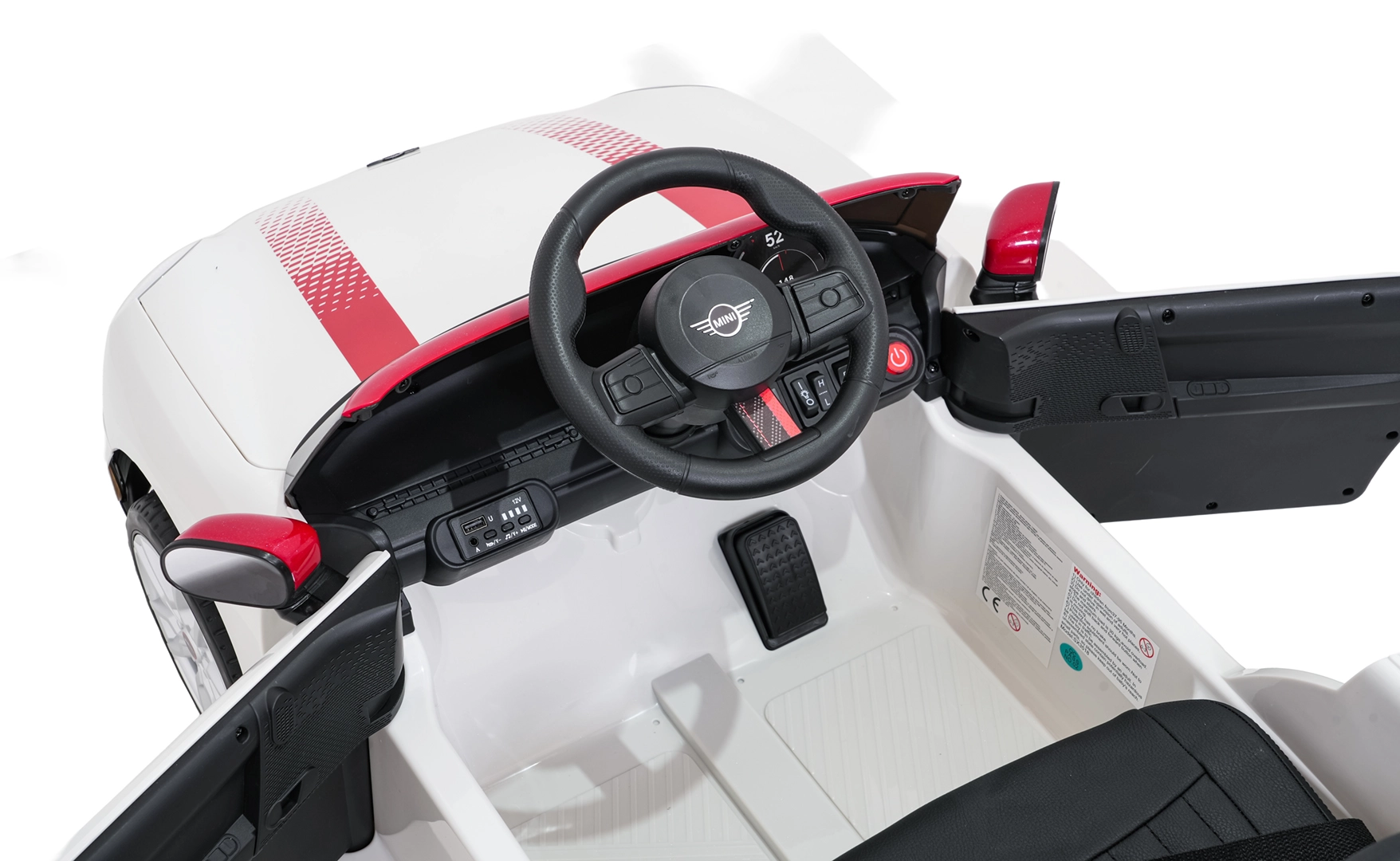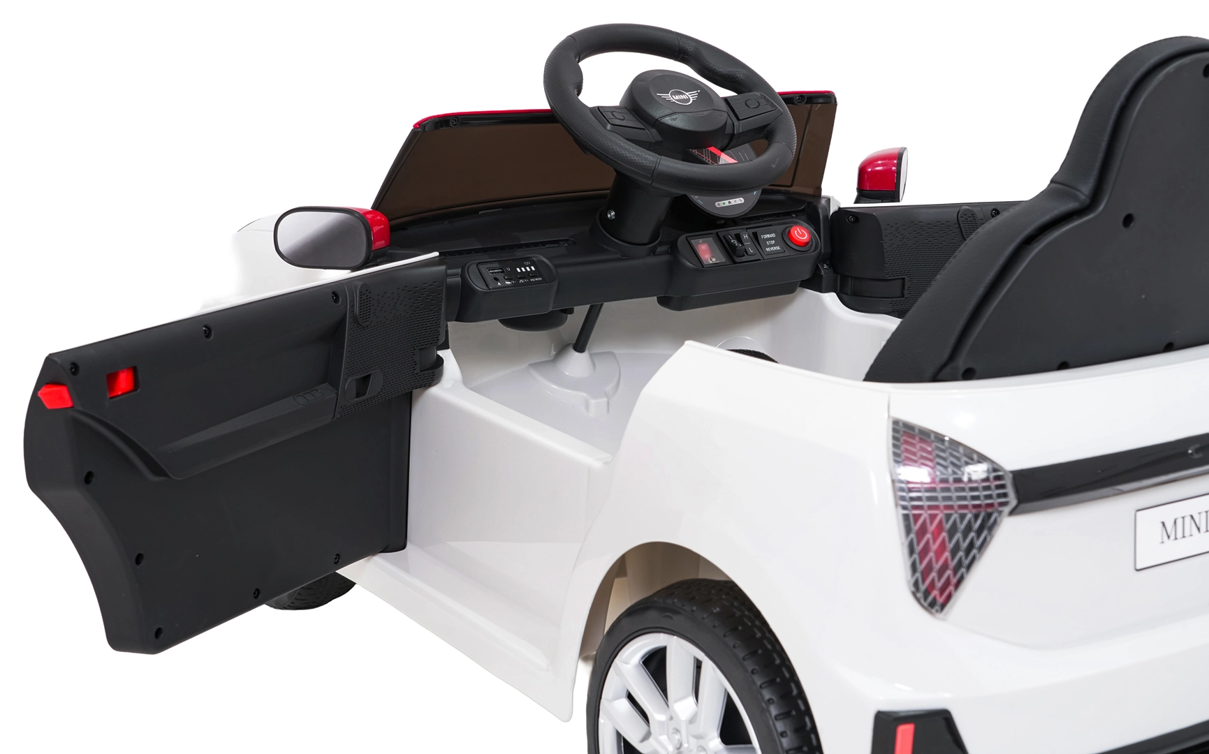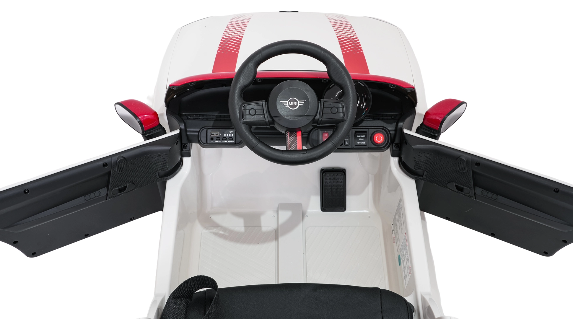 Elektrické autíčko MINI Cooper S v bílé barvě potěší každého malého řidiče svým věrným designem, funkčními LED světly a kvalitním zpracováním. Díky pomalému rozjezdu je jízda plynulá a bezpečná, zatímco pěnová kola EVA (19 × 6 cm) zajistí tichý chod a dobrou přilnavost na různých površích. Zadní odpružení navíc zvyšuje komfort při jízdě.