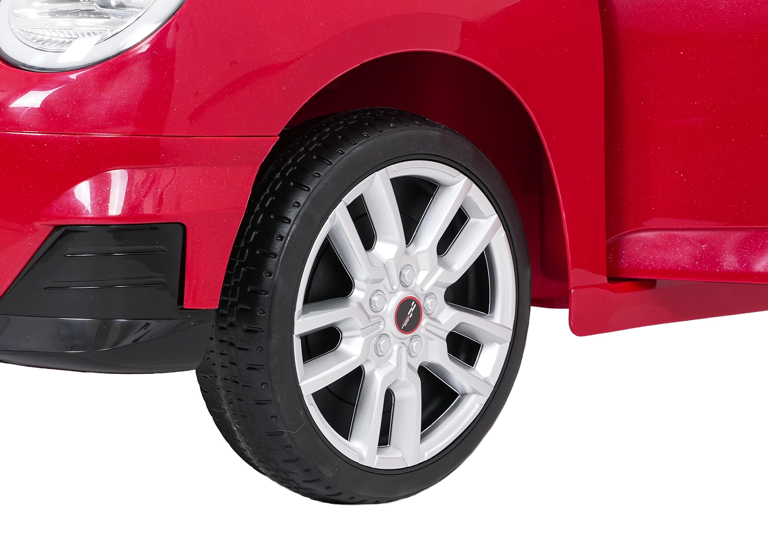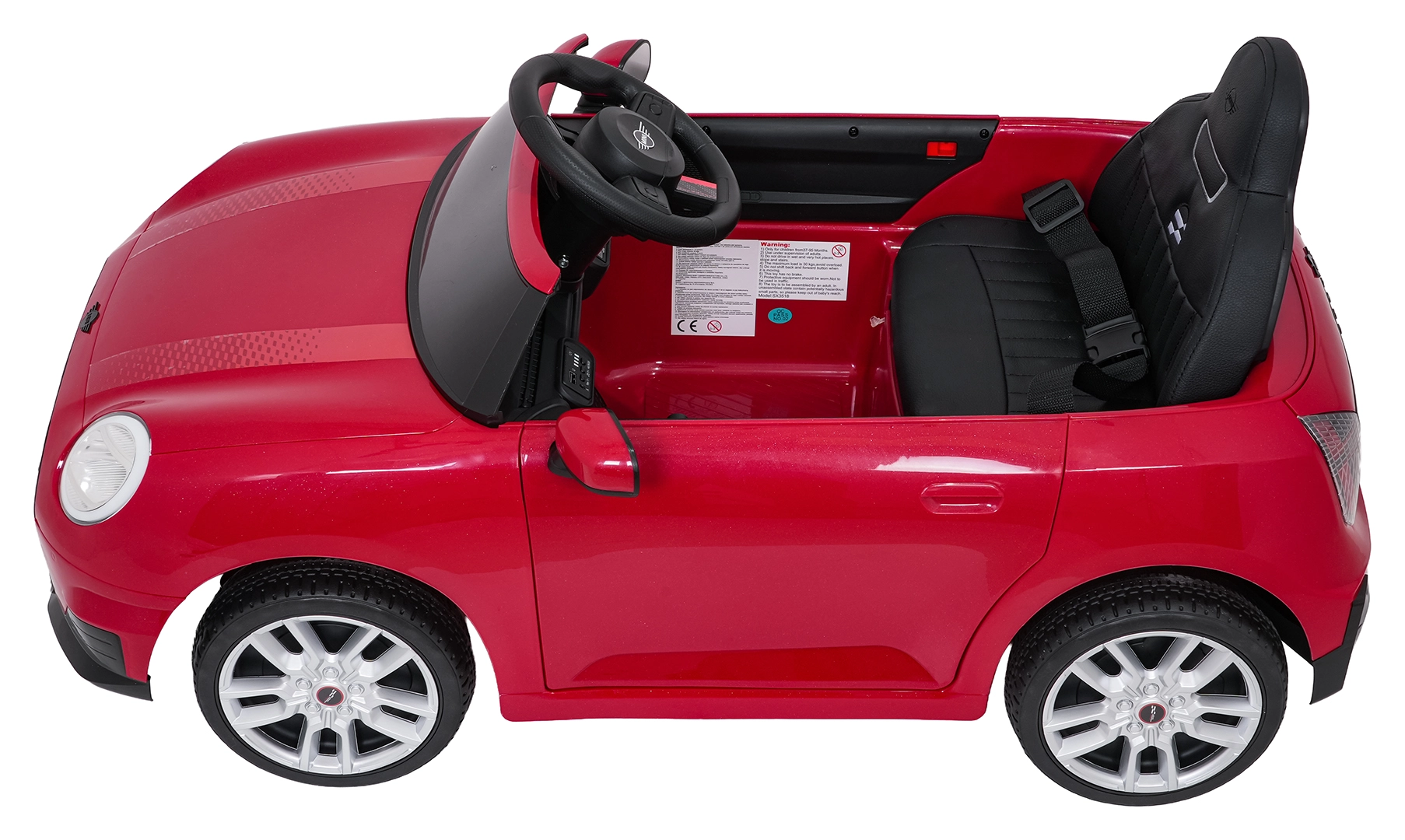 Bezpečnost a komfort zaručuje čalouněné sedadlo z ekokůže s bezpečnostními pásy, zadní tlumiče a dálkové ovládání 2,4 GHz s volbou 3 rychlostí a nouzovým tlačítkem Stop pro rodiče. Pianková kola EVA (19 × 6 cm) jsou tichá, odolná a vhodná pro různé povrchy.