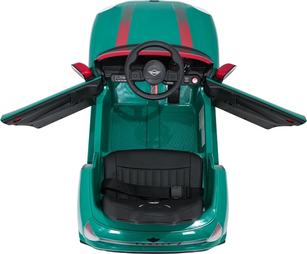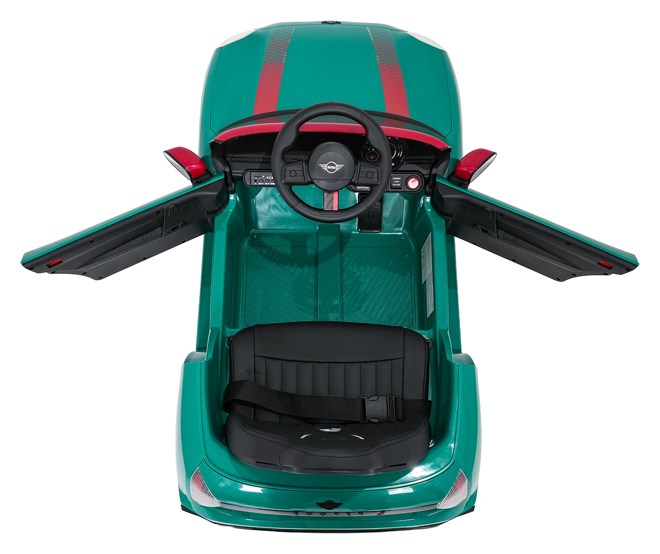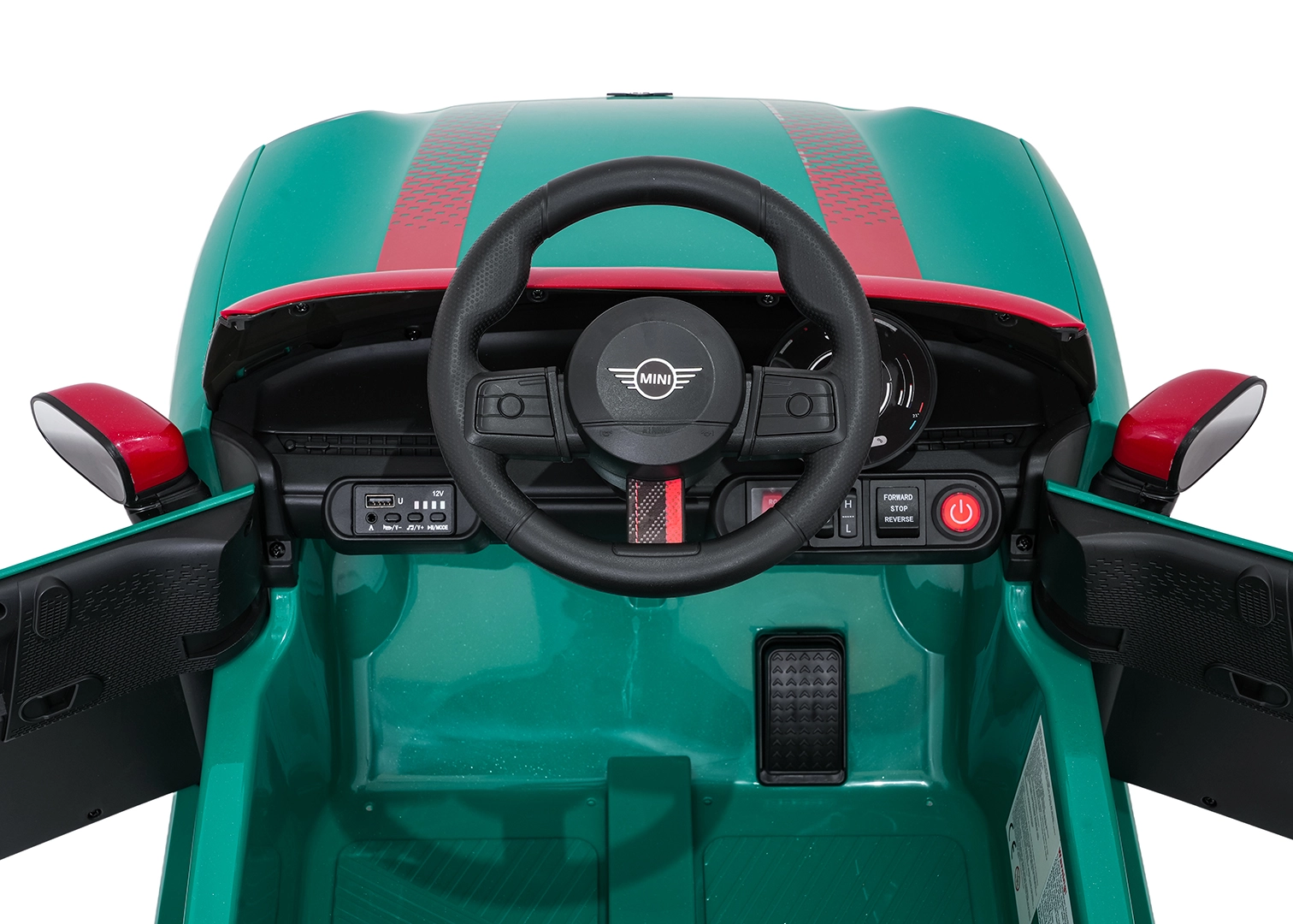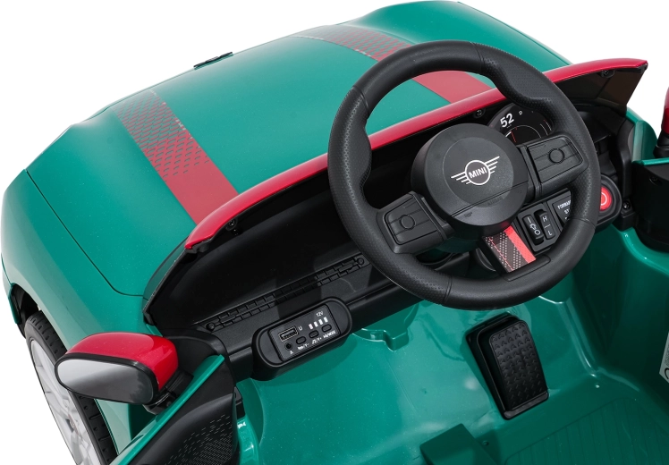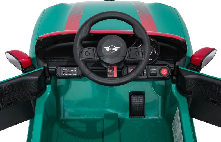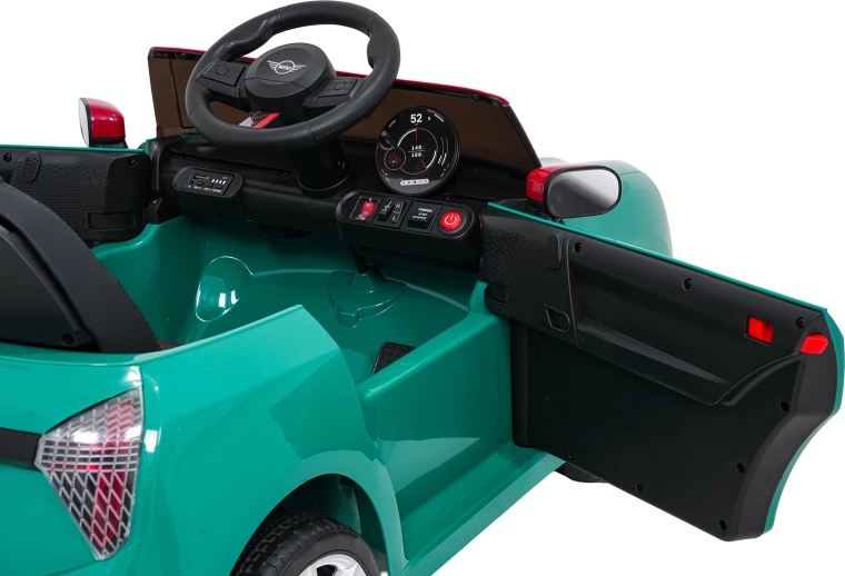 Stylové dětské elektrické autíčko inspirované ikonou MINI přináší skutečný řidičský zážitek. Nabízí výkonný pohon 2x35 W, baterii 12 V 7 Ah, otevírací dveře, LED světlomety vpředu i vzadu a audio panel s USB, MP3, AUX a Bluetooth. Pohodlné sedadlo z eko kůže s bezpečnostním pásem a měkká EVA kola zajišťují komfortní a tichou jízdu doma i venku.
