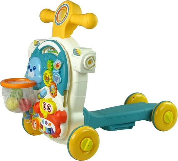 - 4v1: chodítko, edukační stolek (odnímatelný panel), odrážedlo, koloběžka