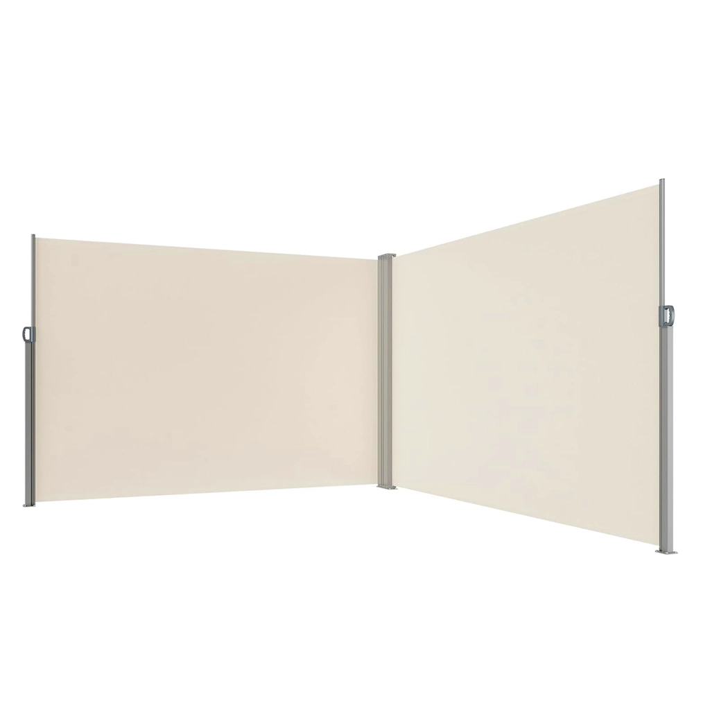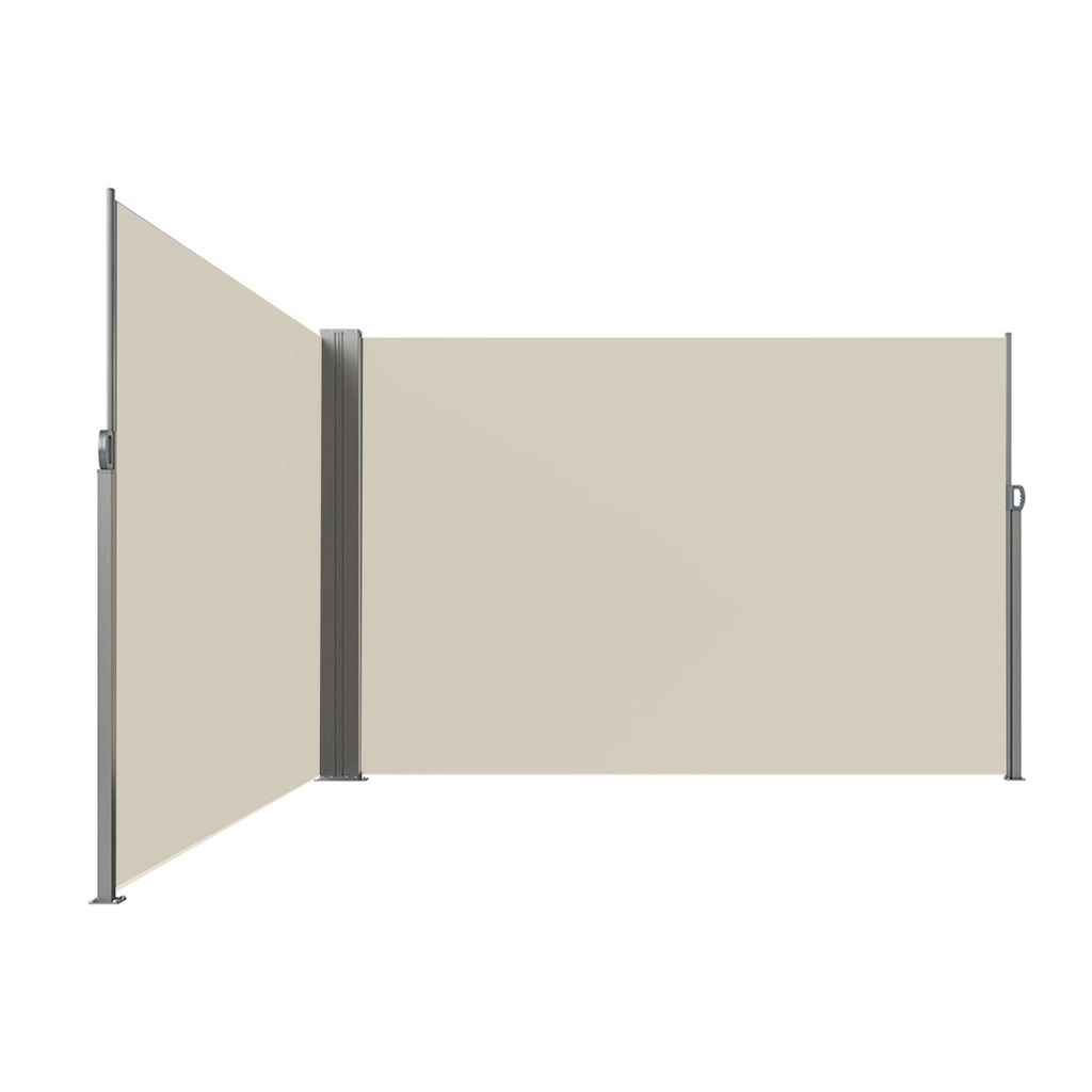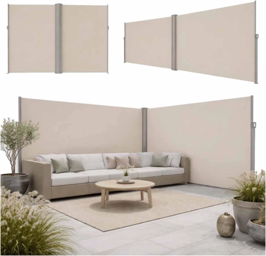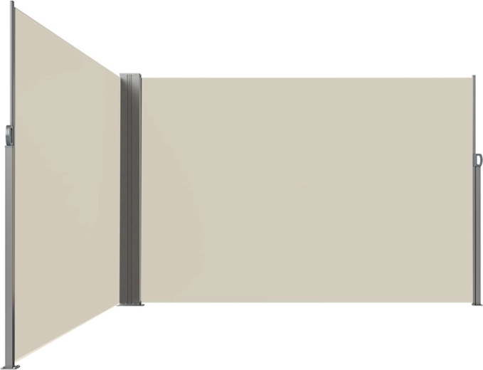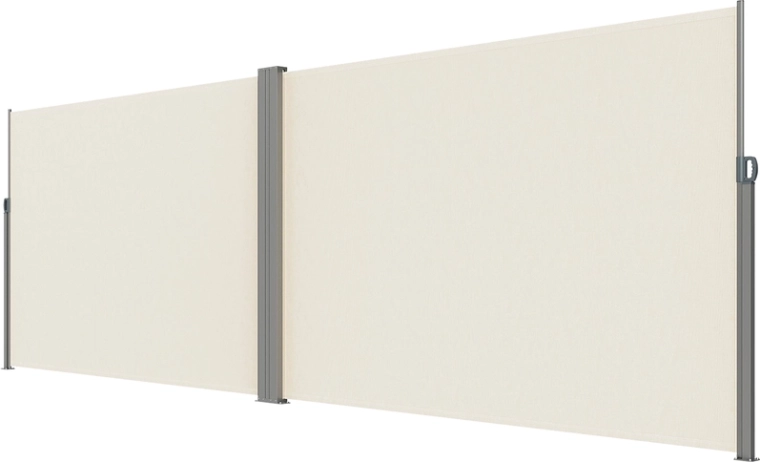 Dva samostatné panely se plynule vysunou a vytvoří L‑tvar pro maximální krytí proti pohledům i větru. Ideální pro terasy a balkony.