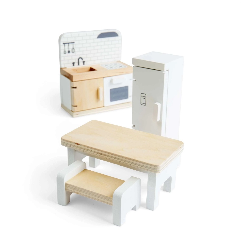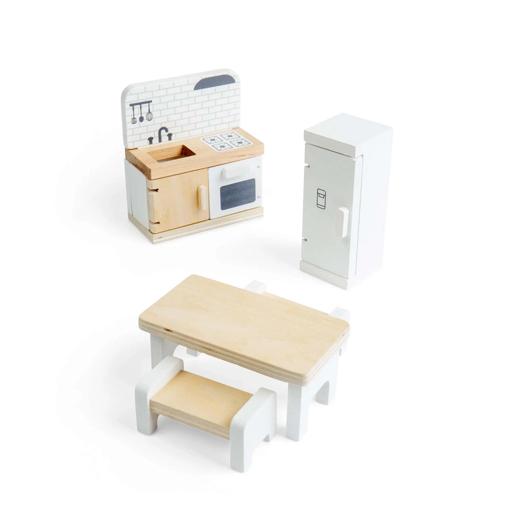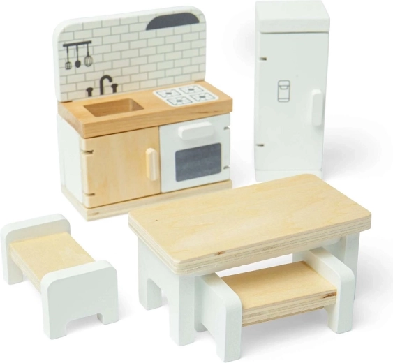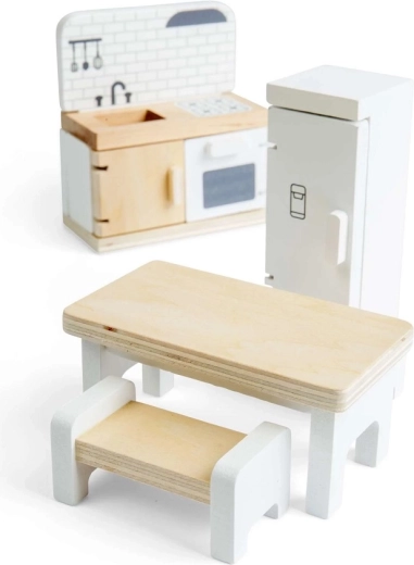 Vytvořte z domečku pro panenky útulnou kuchyň s tímto kvalitním setem od Bigjigs Toys. Sada obsahuje lednici, linku se dřezem, sporákem a troubou, jídelní stůl a 2 lavice pro realistické hraní rolí. Hladké dřevěné provedení s FSC certifikací je odolné, bezpečné a šetrné k přírodě. Podporuje kreativitu, jemnou motoriku a společnou hru dětí od 3 let.