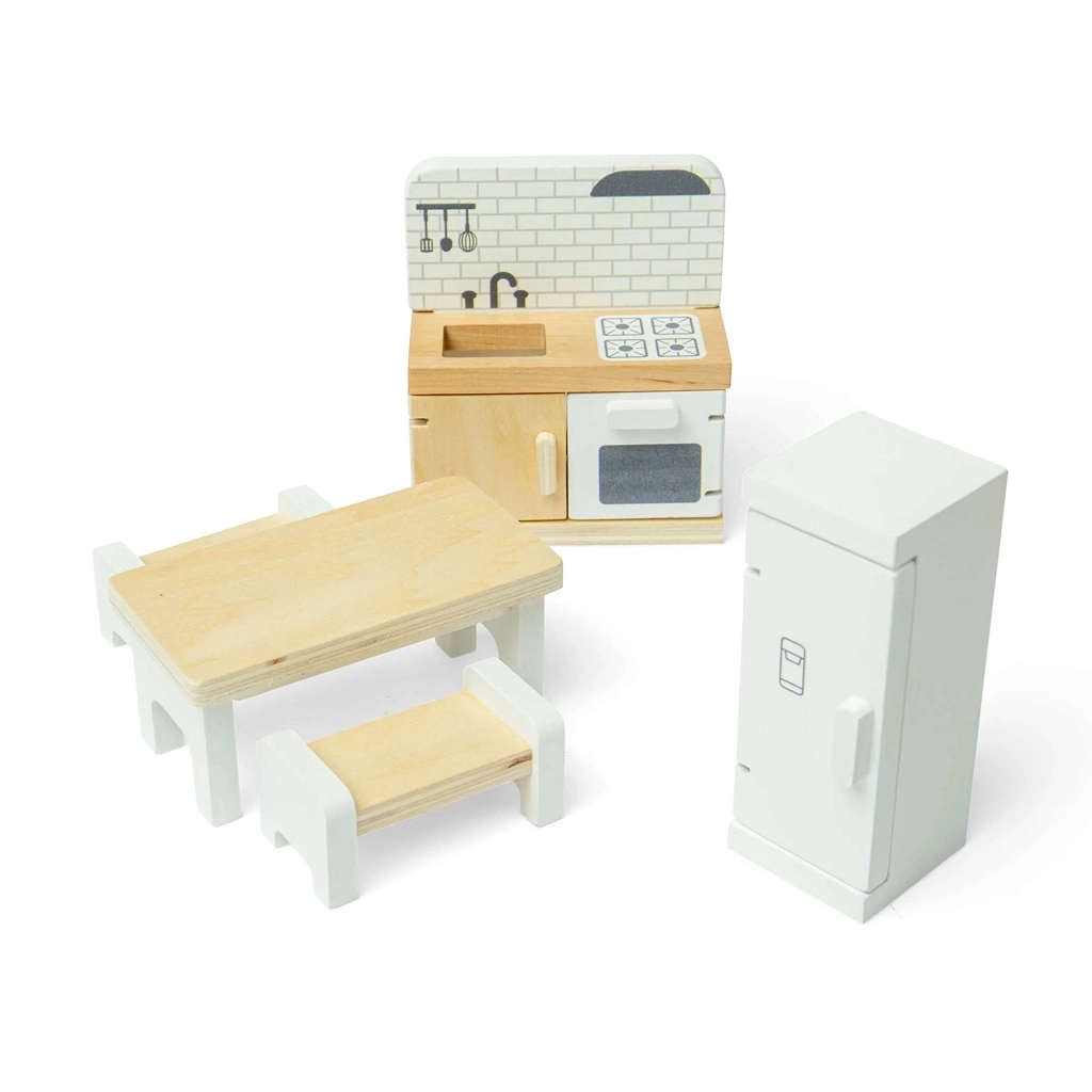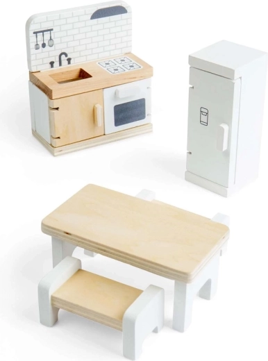 Kvalitní zpracování z dřeva s certifikací FSC zaručuje odolnost při každodenním hraní a bezpečné, hladké povrchy. Set je kompatibilní s většinou běžných domečků pro panenky a snadno jej zkombinujete s dalšími místnostmi a doplňky.