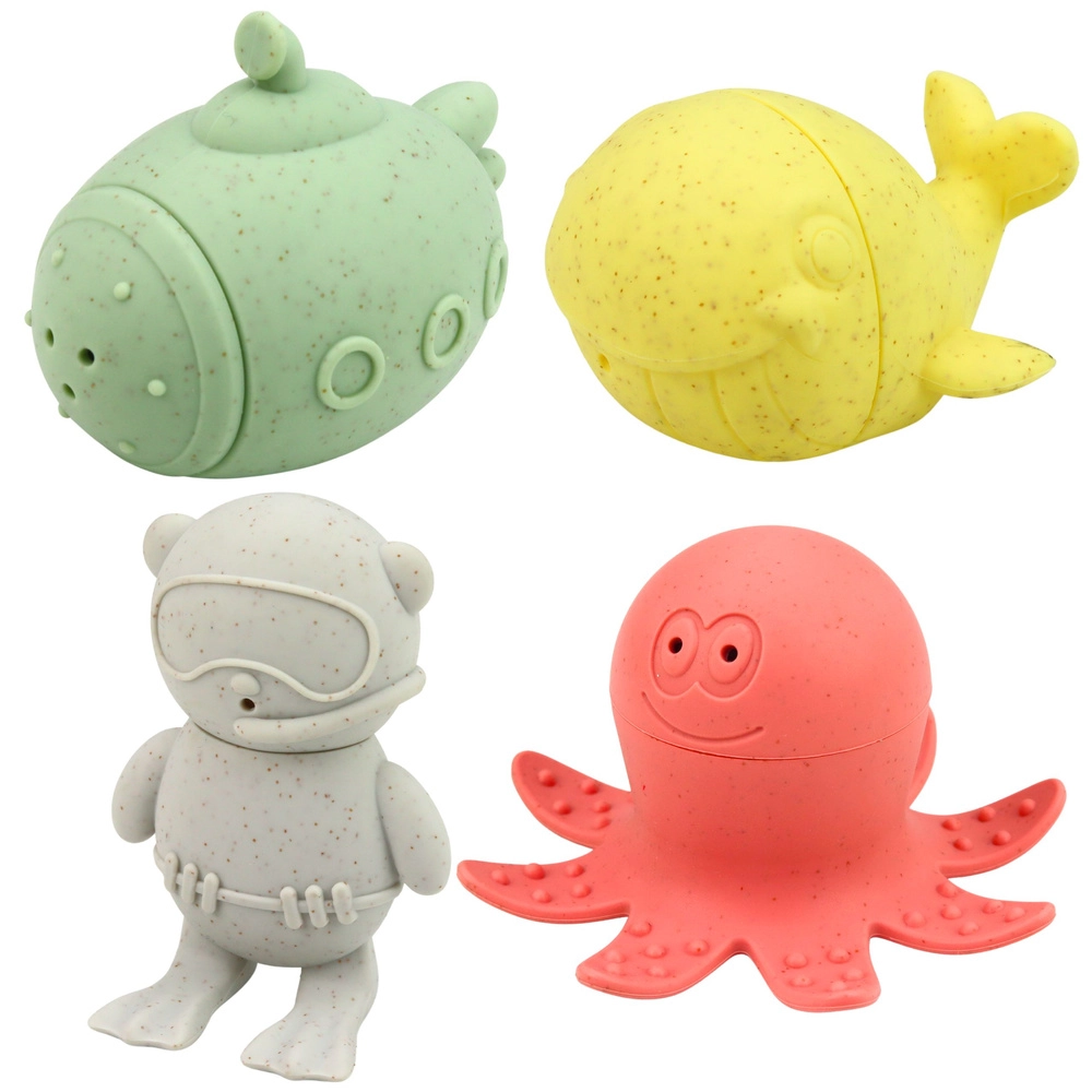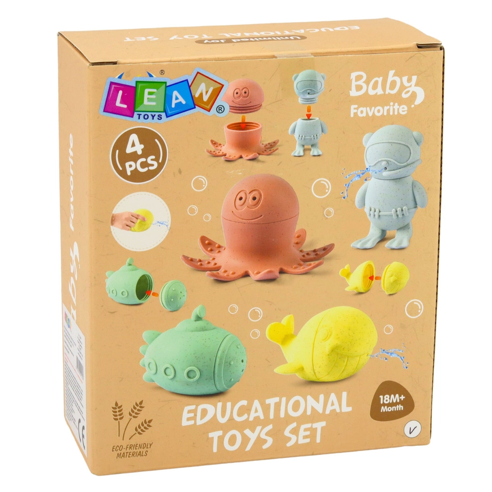 Pastelové hračky do vany promění každou koupel v hravou výpravu pod hladinu. Díky měkkému, pružnému materiálu se figurky dobře drží, jsou bezpečné a příjemné na dotek. Po naplnění vodou a stisknutí stříkají drobnými otvory, což děti motivuje k aktivní hře a objevování.