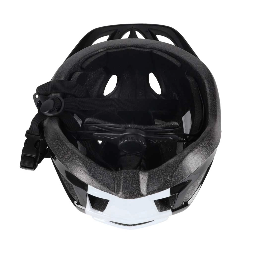 Prodyšná konstrukce s bohatým odvětráním udržuje příjemné klima okolo hlavy i v horku. Vyjímatelné polstrování a nastavitelný pásek zvyšují komfort a usnadňují údržbu. Univerzální design v černo-bílém provedení se hodí do města i do terénu.