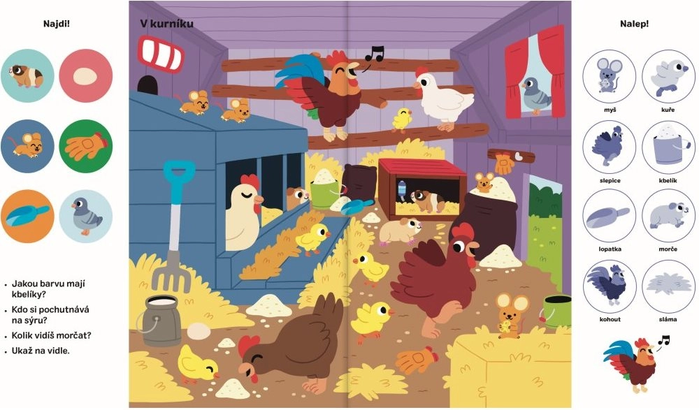 - Otázky a aktivity – pomáhají naučit se názvy zvířat a rozšířit slovní zásobu.