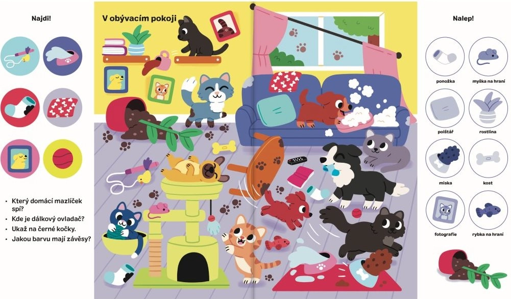 Objevujte svět roztomilých domácích mazlíčků s kreativním sešitem, který kombinuje hledání obrázků a lepení samolepek. Děti si hravou formou rozvíjejí slovní zásobu, soustředění a zručnost, zatímco plní úkoly na každé dvojstraně.