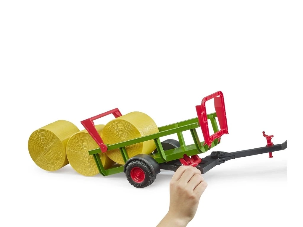 Model je plně kompatibilní s traktory BRUDER (řady 1000 až 3000) i s lisy na kulaté balíky s typickým tažným zařízením BRUDER. Balíky jsou součástí balení, takže nic nebrání okamžité hře a rozvoji motoriky, fantazie a vztahu k technice.