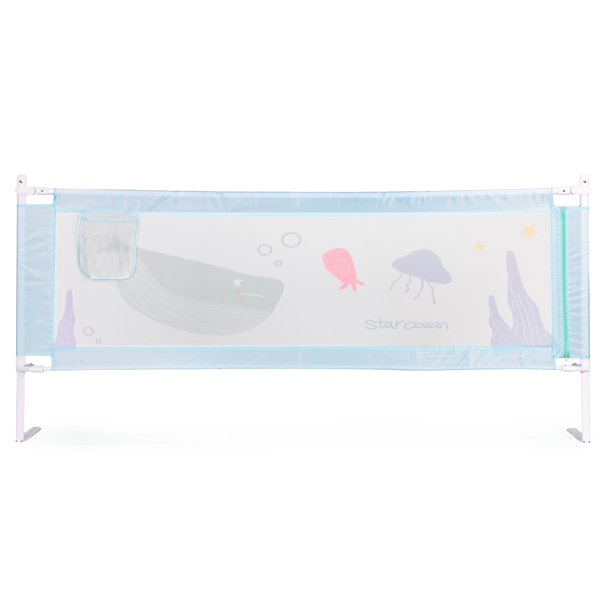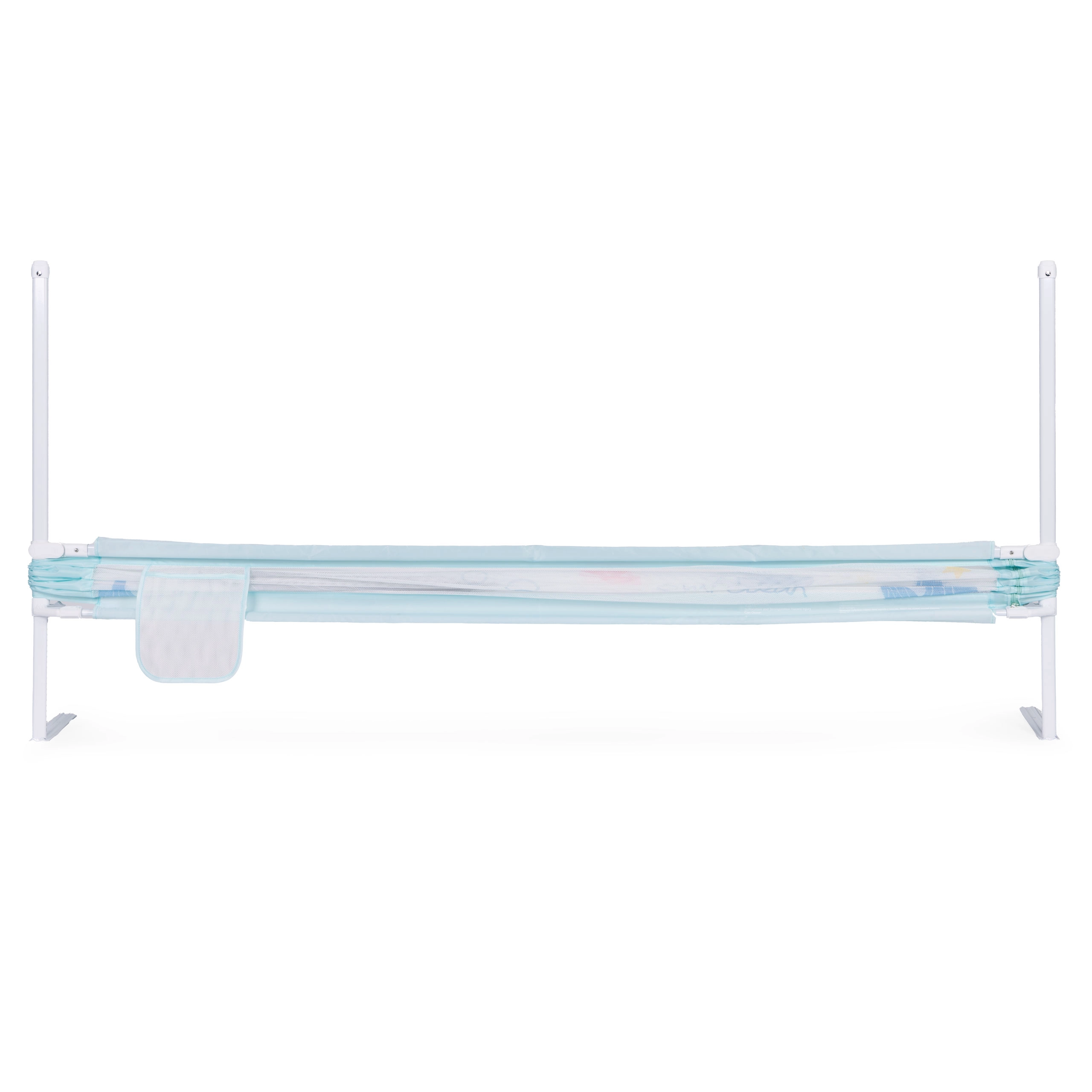 Díky univerzálnímu upevnění lze zábranu instalovat na kteroukoliv hranu postele a propojit více dílů do bezpečného celku. Odolné materiály – ocel, kvalitní tkanina 210D Oxford a polyester – garantují stabilitu a dlouhou životnost. Praktická kapsa udrží po ruce dudlík, kapesníčky nebo oblíbenou hračku.