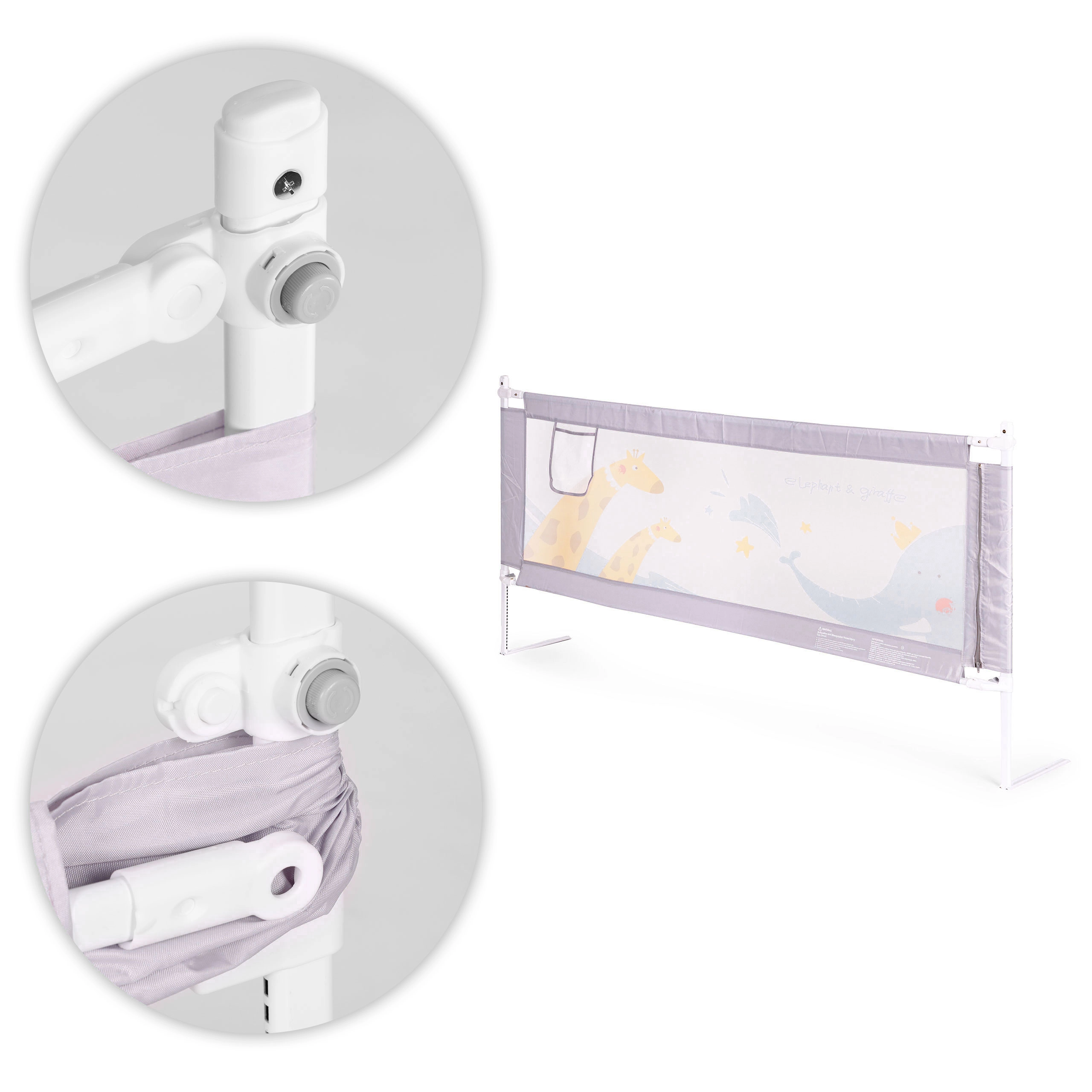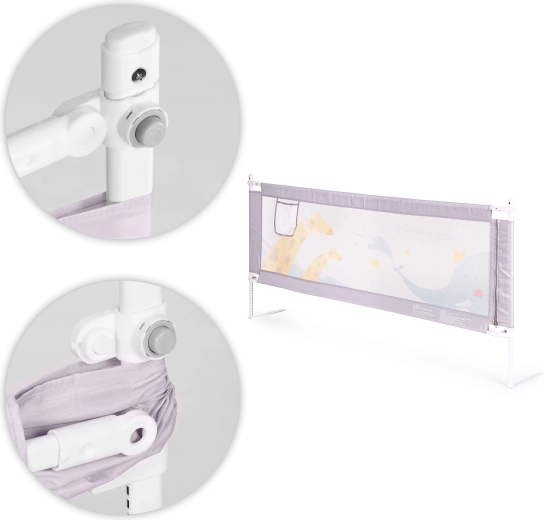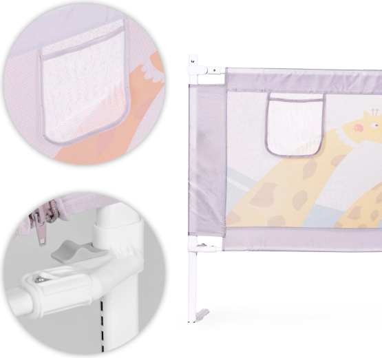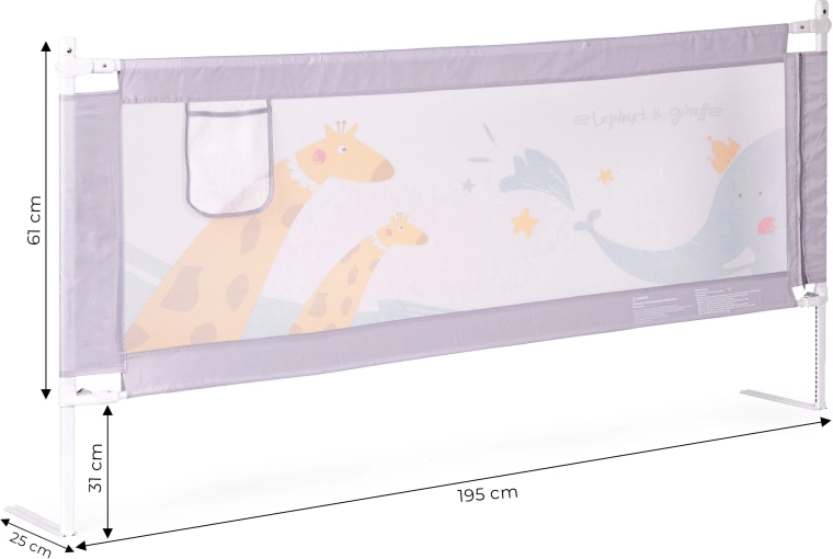 Díky univerzální montáži a možnosti propojení více zábran snadno vytvoříte bezpečný, útulný prostor na jakékoli straně postele. Odolné materiály (ocel, textilie 210D Oxford, polyester) garantují dlouhou životnost a snadnou údržbu – potah lze sejmout a vyprat. Decentní zvířecí motiv zapadne do dětského pokoje a kapsa na dudlík, ubrousky či hračku udrží potřebné věci po ruce.