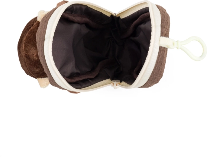Roztomilé dětské pouzdro na pastelky a tužky s motivem opičky, které si děti zamilují. Na přední straně je našitá plyšová opička, která působí jako malý strážce všech pokladů. Pouzdro je vyrobeno z měkkého plyšového materiálu v kombinaci s odolnou textilní tkaninou, má podšívku z polyesteru pro ochranu obsahu a praktickou karabinku na připnutí k batohu. Vhodné pro děti od 3 let.