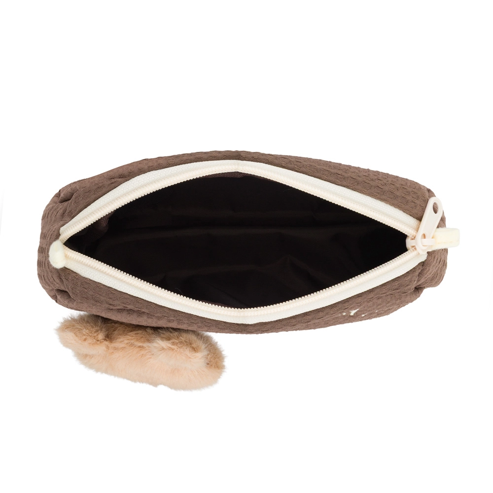 Tato roztomilá etue v podobě hnědého medvídka vnese do kreslení i do školy spoustu radosti. Plyšová hlavička působí jako malý mazlíček, zatímco vaflová textilie je na dotek příjemná a praktická pro každodenní používání. Uvnitř najdete odolnou polyesterovou podšívku, která chrání obsah před oděrkami a udržuje pouzdro déle jako nové.