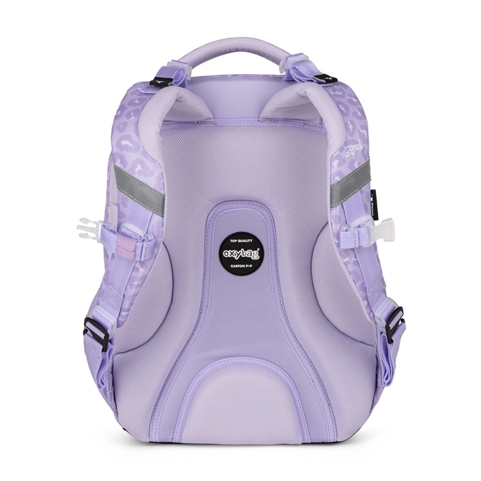 Praktický tří dílný školní set OXY NEXT Bunny v jemné levandulové barvě kombinuje prostorný batoh, velký penál a lehký sáček na cvičky. Batoh má anatomicky tvarovaná záda, polstrované ramenní popruhy a hrudní popruh pro pohodlné a zdravé nošení. Nabízí spoustu kapes a organizér, boční kapsy na láhev, držák na klíče/čip a reflexní prvky pro bezpečnost. Zpevněné nepromokavé dno chrání obsah i v nepříznivém počasí.