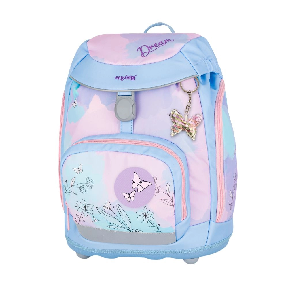 Školní set 4 ks OXYBAG Sherpy Kolibřík přináší lehký a promyšlený batoh s jemným pastelovým designem s motivy kolibříků a motýlů, doplněný ladícím penálem, vakem a sadou výměnných placek na suchý zip. Děti si tak mohou přizpůsobit vzhled podle nálady a zároveň mít všechny školní potřeby přehledně uspořádané.