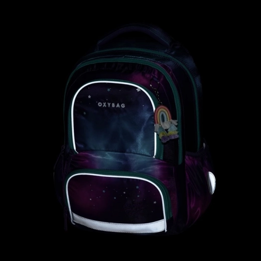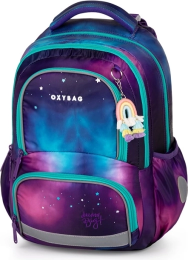 Školní set OXY NEXT Dream v galaktickém motivu myslí na pohodlí, bezpečnost i perfektní organizaci školních potřeb. Batoh je anatomicky tvarovaný, má polstrované ramenní popruhy a hrudní popruh pro stabilní a zdravé nošení. Díky mnoha kapsám, držáku na klíče/čip a dvěma prostorným bočním kapsám bude mít dítě ve věcech vždy pořádek.