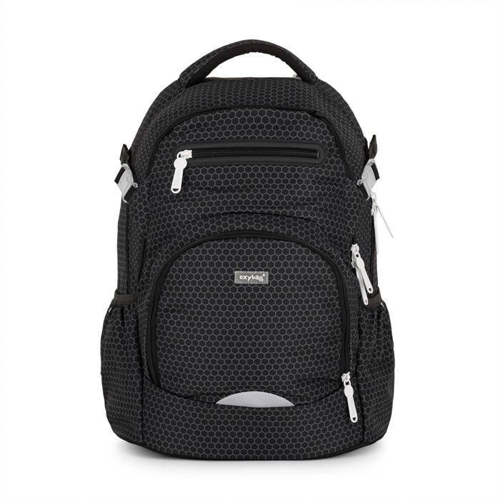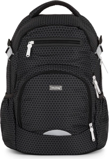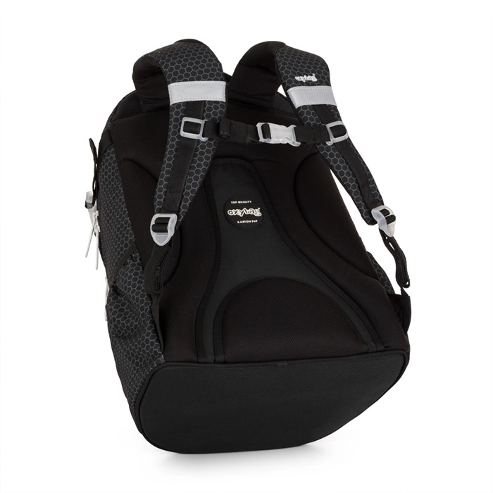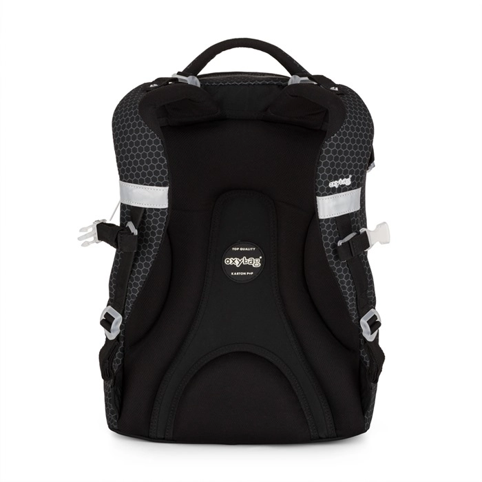 Školní batoh OXY Ombre black je navržen tak, aby dětem od 3. třídy poskytl pohodlí, pořádek i bezpečí na cestě do školy. Ergonomicky tvarovaný zádový panel s délkou 43 cm, polstrované popruhy a nastavitelný hrudní popruh zajišťují zdravé rozložení zátěže a komfort při každodenním nošení.