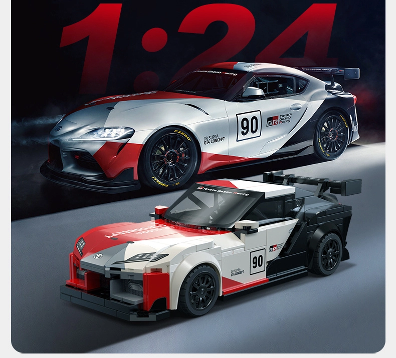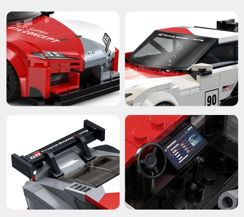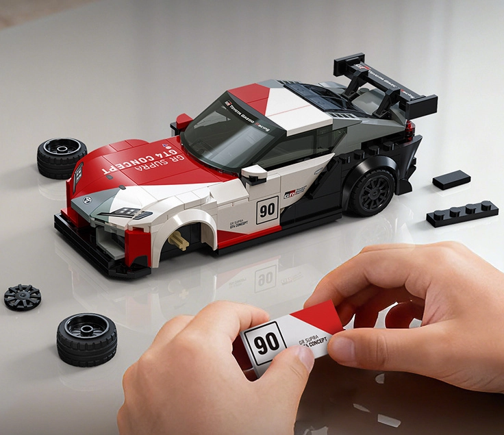 Model vyniká výrazným bodykitem, velkým zadním křídlem a závodním zbarvením inspirovaným TOYOTA GAZOO Racing. Ideální pro fanoušky motorsportu a rychlých stavebnic.