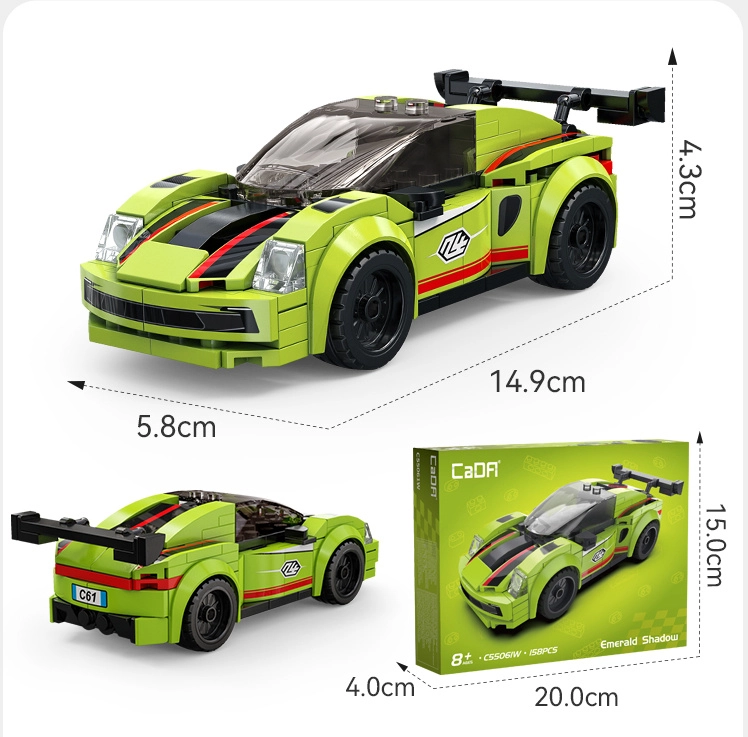 Set obsahuje 158 dílků včetně doplňků a přehledného návodu. Po sestavení měří vůz přibližně 14,9 × 5,8 × 4,3 cm a díky 4 pojízdným kolům se hladce pohybuje po rovných plochách. Stavebnice je kompatibilní s dalšími sety CaDA, takže můžete model snadno upravovat a rozšiřovat.