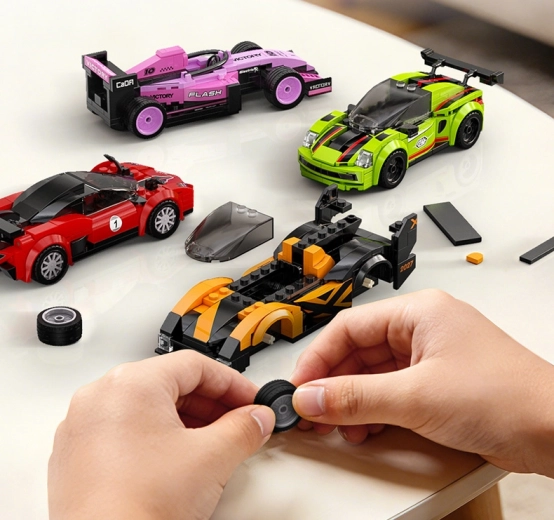 Model je statický, ale díky čtyřem funkčním kolům se plynule pohybuje po rovném povrchu – ideální pro hraní i inscenované závody.