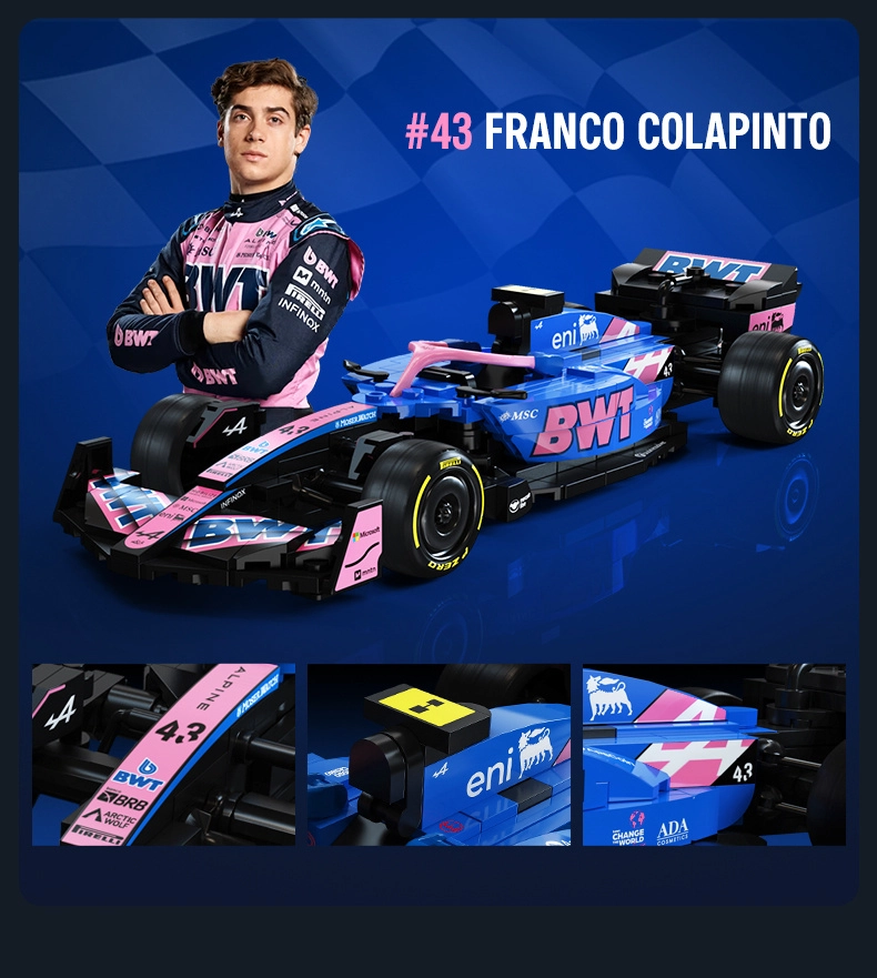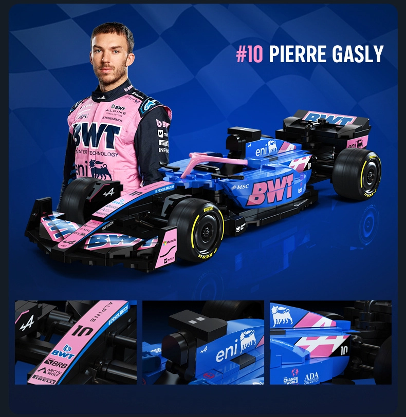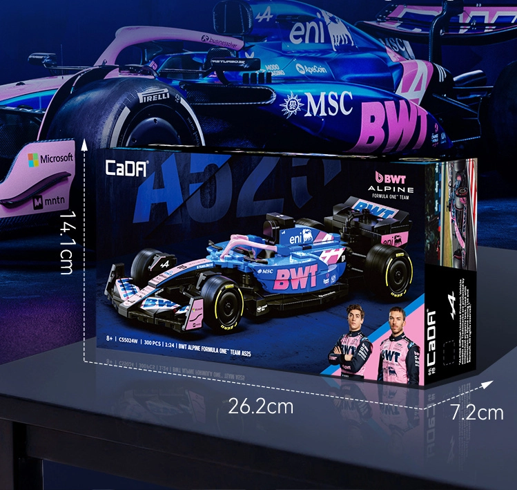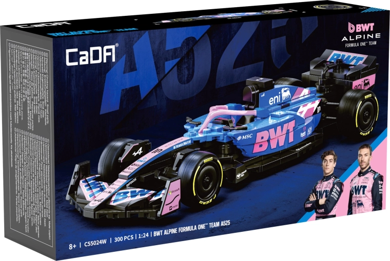 Tato designová stavebnice CaDA věrně zachycuje agresivní siluetu a výrazné barvy monopostu BWT ALPINE F1 A525. Díky bohatým detailům, potiskům na dílcích a promyšlené konstrukci je ideální jako stylový exponát do vitríny i jako inspirace pro kreativní hraní.