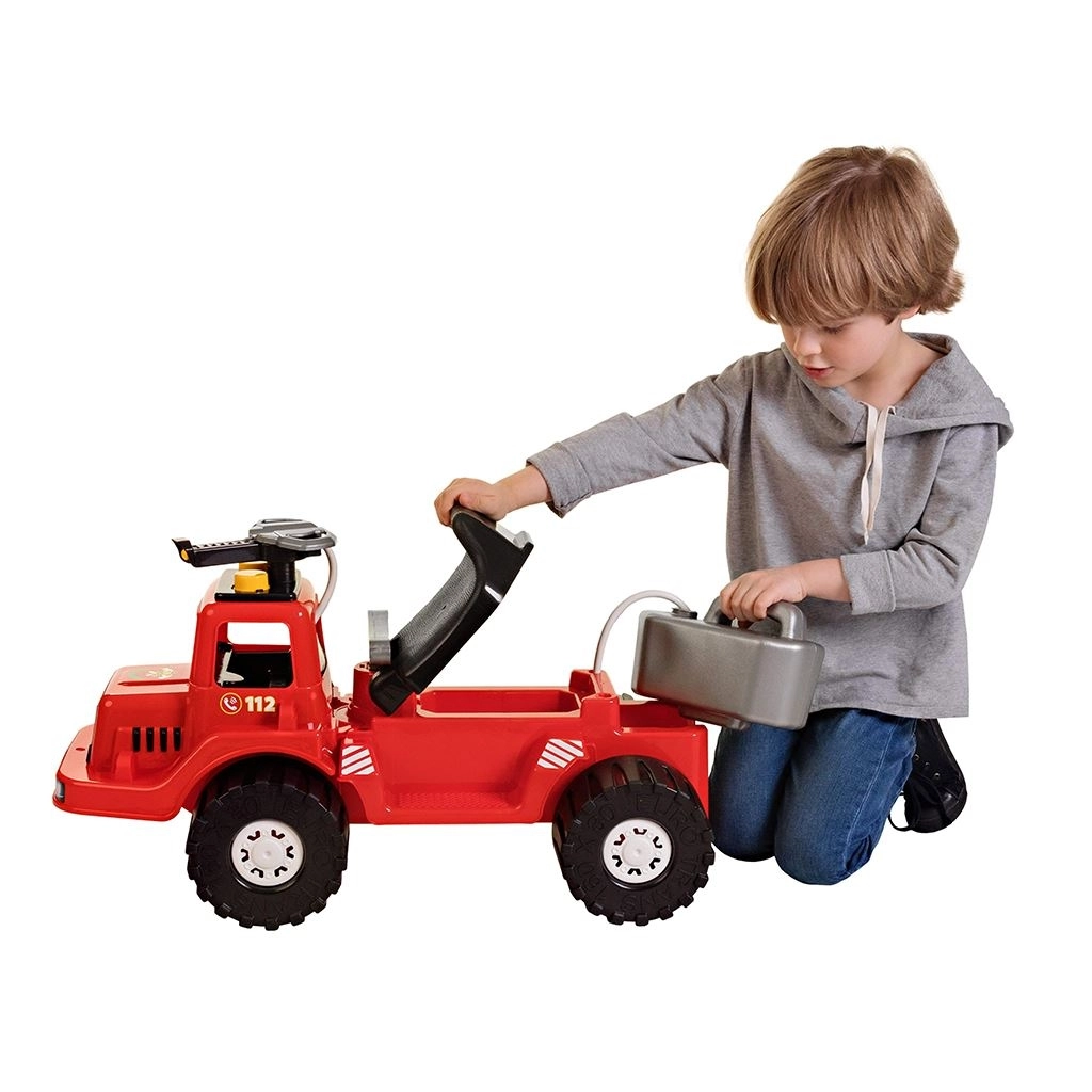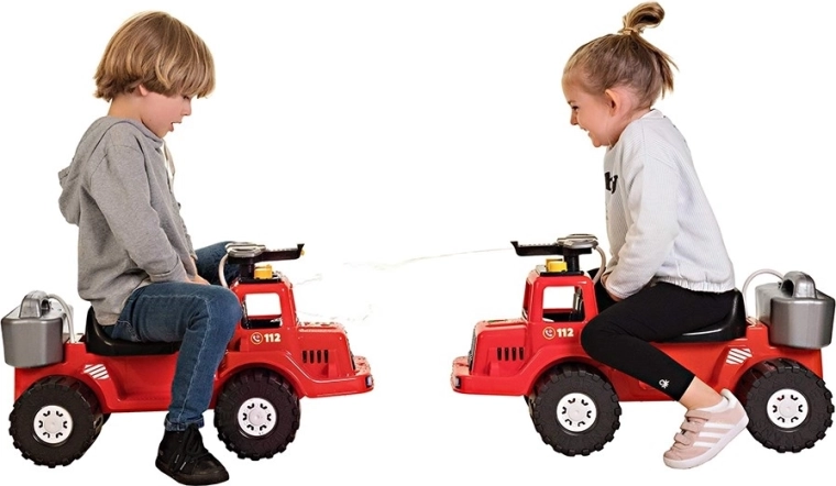 Hasičské odrážedlo BAYO promění každou jízdu v akční záchrannou misi. Děti mohou skutečně stříkat vodu díky praktickému zásobníku a otočnému dělu, zatímco prostorný úložný prostor pod sedadlem pojme drobné hračky. Odolná konstrukce z kvalitního plastu a široká kola zajišťují stabilitu a pohodlí při jízdě.