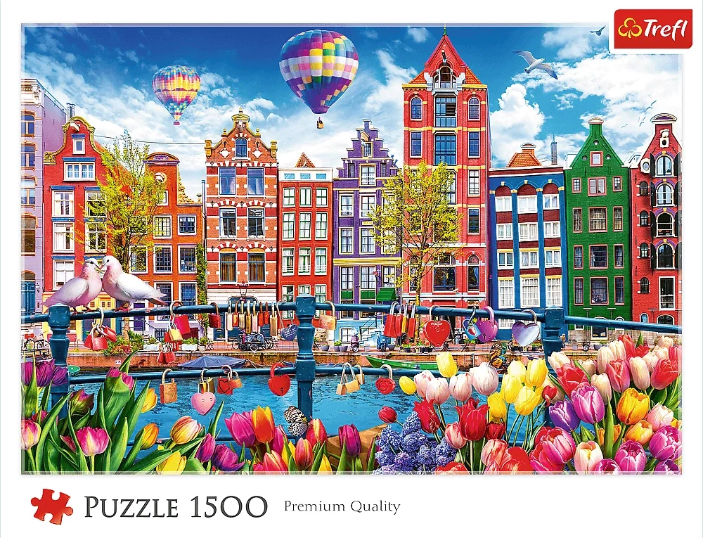Objevte kouzlo nizozemské metropole při skládání kvalitního puzzle TREFL. Motiv Barevný Amsterdam zaujme sytými barvami, jemnými detaily a příjemnou atmosférou města, která po dokončení vynikne jako dekorace na zdi. Díky 1500 dílkům poskytne zábavu na mnoho hodin a skvěle procvičí soustředění.
